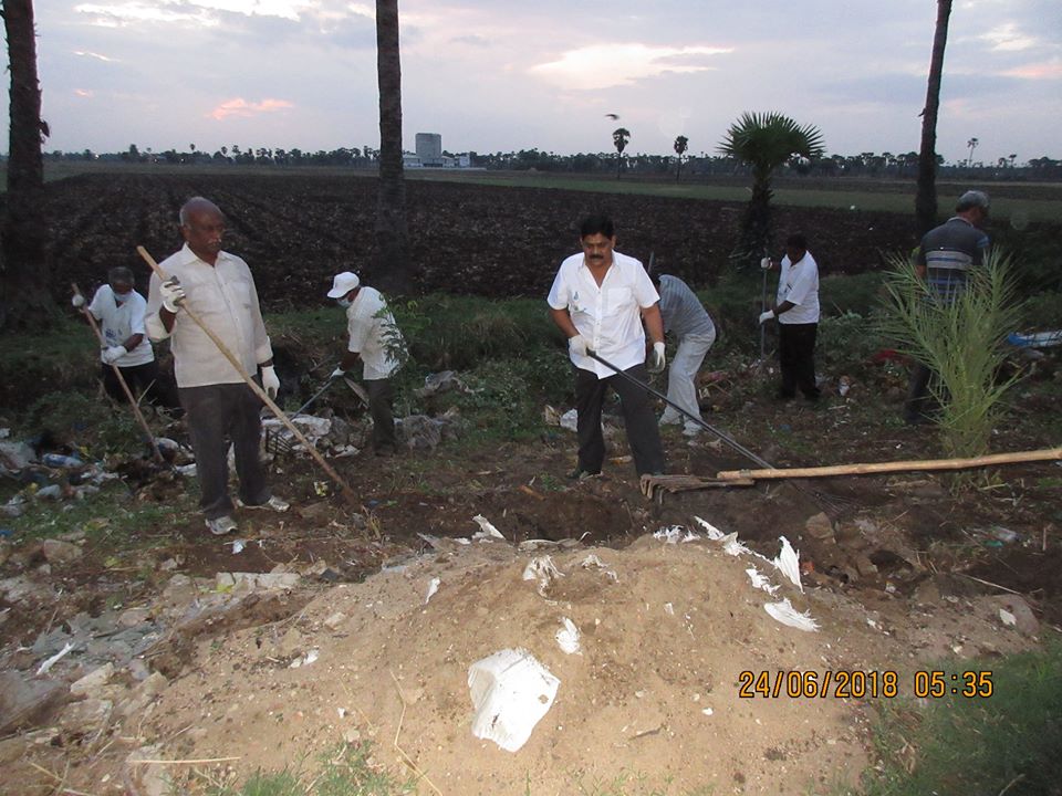 ఆరేళ్ల కాల చక్రం à 150 మంది శ్రమదానం- పాతిక వేల జనాభా గల గ్రామ శుభ్ర- సుందర దృశ్యం.