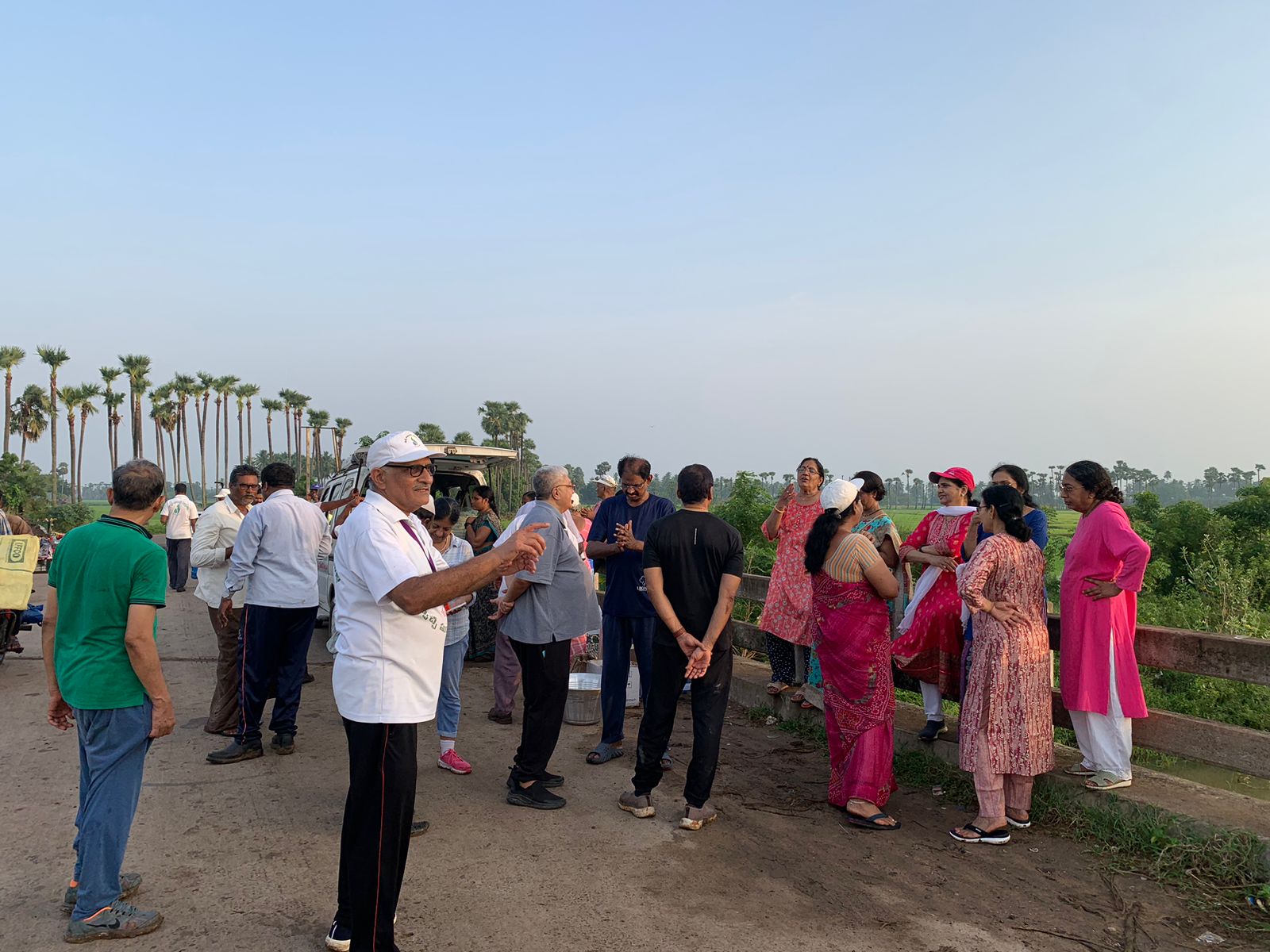 - పాత్రికేయులూ, పిన్న-పెద్దలంతా ఒక దశలో 75 మంది దాక, తెల్లారక ముందే ఈ సత్కార్యంలో ప్రవేశమూ, శివరాంపురం దిశగా, రెండు వంతెనల నడుమ రహదారి కిరు ప్రక్కలా ఏ నూట ఏభై పండ్ల - పూల చెట్లనో పోటీ పడి నాటడమూ,