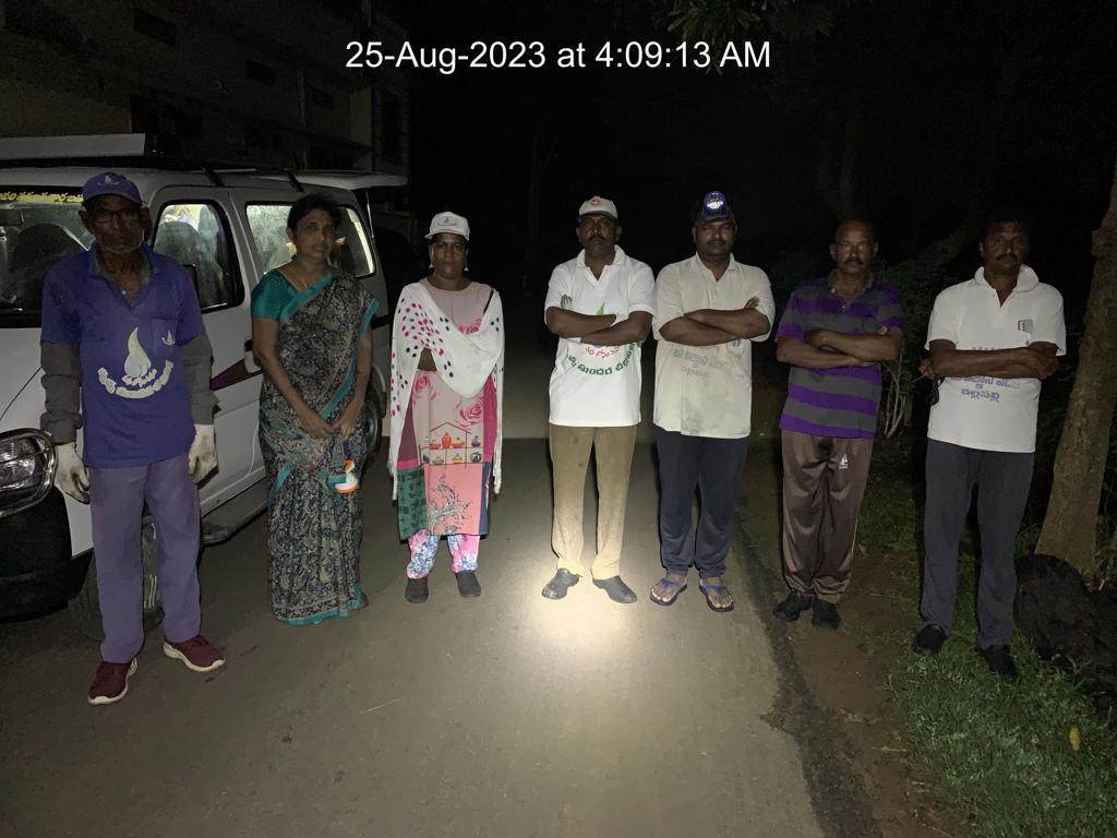 మొత్తం 26 మంది కార్యకర్తల్లో ఈ 25.8.23 వేకువ 9 మంది ఉనికైతే మరీ 4.09 కే! సదరు ఉనికి గంగులపాలెం మురుగు కాల్వ వంతెనే గాని సమయం గడిచే కొద్దీ తూర్పు, పడమర, దక్షిణ దిశలకు విస్తరించింది.