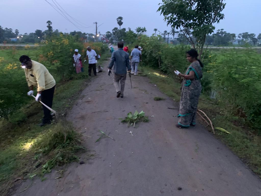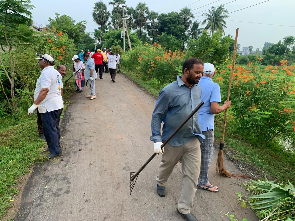నేటి కృషి సమీక్ష ప్రారంభంలో ఒక నిఖార్సైన గ్రామ సుందరీకర్త - ఆకుల దుర్గాప్రసాదు ముమ్మార్లు చాటిన స్వచ్ఛ - సుందరోద్యమ త్రివిధ నినాదాలతో, DRK గారి ప్రశంసతోనూ, నేటి శుభ్ర సుందరీకృత వీధి పట్ల అందరి వదనాల్లో సంతృప్తితోనూ ముగిసింది.
