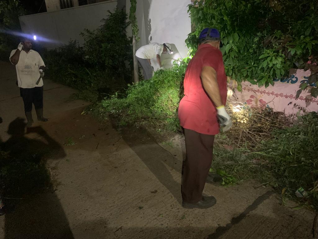దక్షిణం ప్రక్క పిచ్చి తీగలెంతగా అల్లుకు పోయినవంటే అసలక్కడ మురుగు కాల్య ఉందని తెలియనంతగా! ఆ చిన్న వీధిలోనే గంట కాలంలోనే పుట్టుకొచ్చిన వ్యర్ధాలే ట్రాక్టర్ నిండుగా! ఇందులో ఐదారుగురి బట్టలు మట్టి – మురుగుల్తో ఖరాబై, తెల్లారాక చూడాలి వాళ్ల ఆకారాలు!