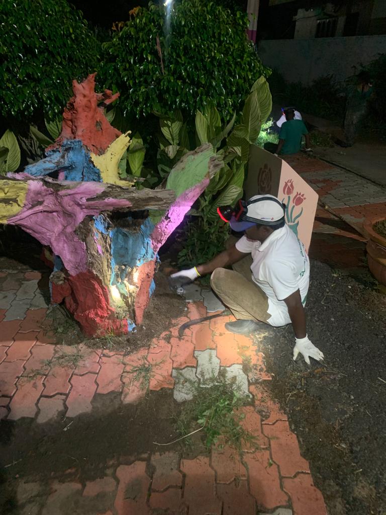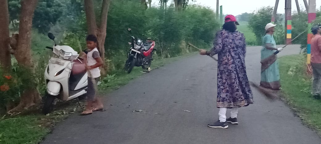 ఇదే వీధిలో దూరంగా - డైరీ కేంద్రం వద్ద ఐదుగురు సుందరీకర్తల ముమ్మరమైన పని! బోగన్ విలియా ముళ్ల - పూల చెట్ల కొమ్మలకి కాస్త క్రమశిక్షణ నేర్పడమే ముఖ్య వ్యాపకంగా గంటన్నర శ్రమదానం!