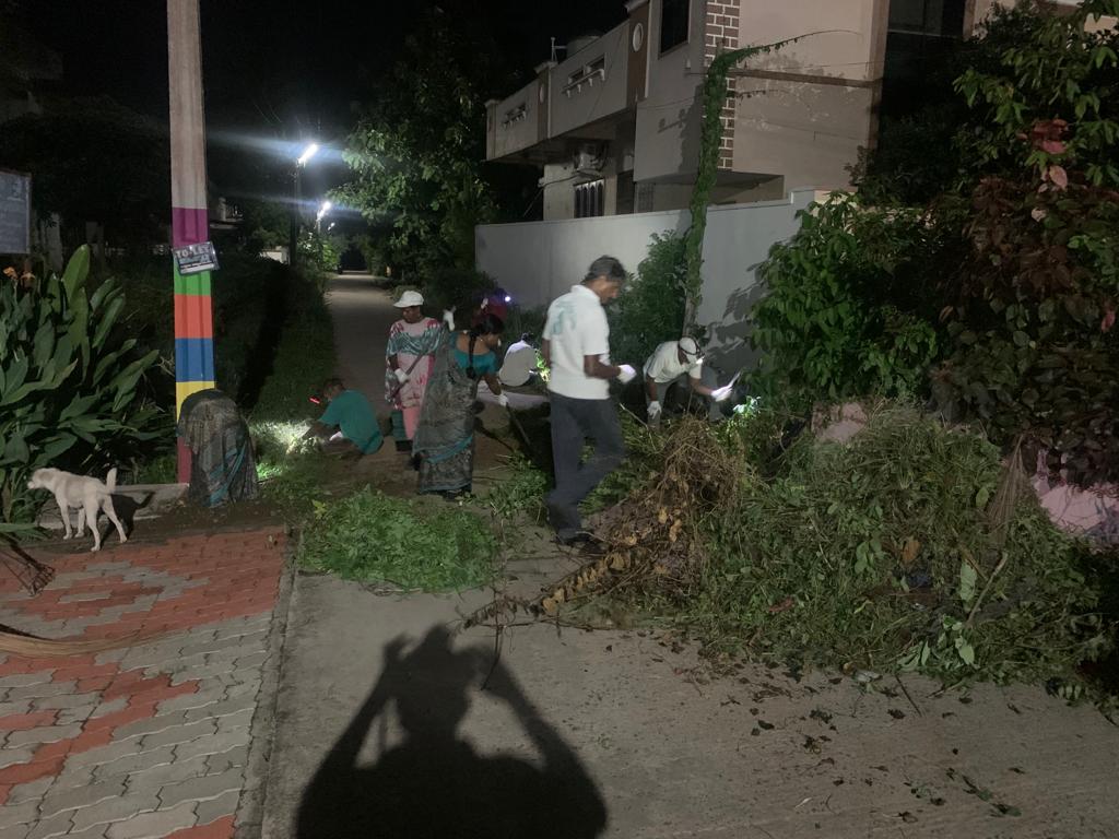 ఇక రెండవ కార్యరంగం మరొక 60 - 70 గజాల గంగులపాలెం వీధి పడమరగా! మళ్లీ ఇక్కడొక 15 మంది ! పేవర్ టైల్స్ మీద మట్టి గోకి, నిక్కుతున్న గడ్డిని చెక్కి, మితిమీరి పెరుగుతున్న చెట్ల కొమ్మల పని బట్టి, వ్యర్ధాలన్నిటినీ ట్రక్కులో కెక్కించిన వైనం!