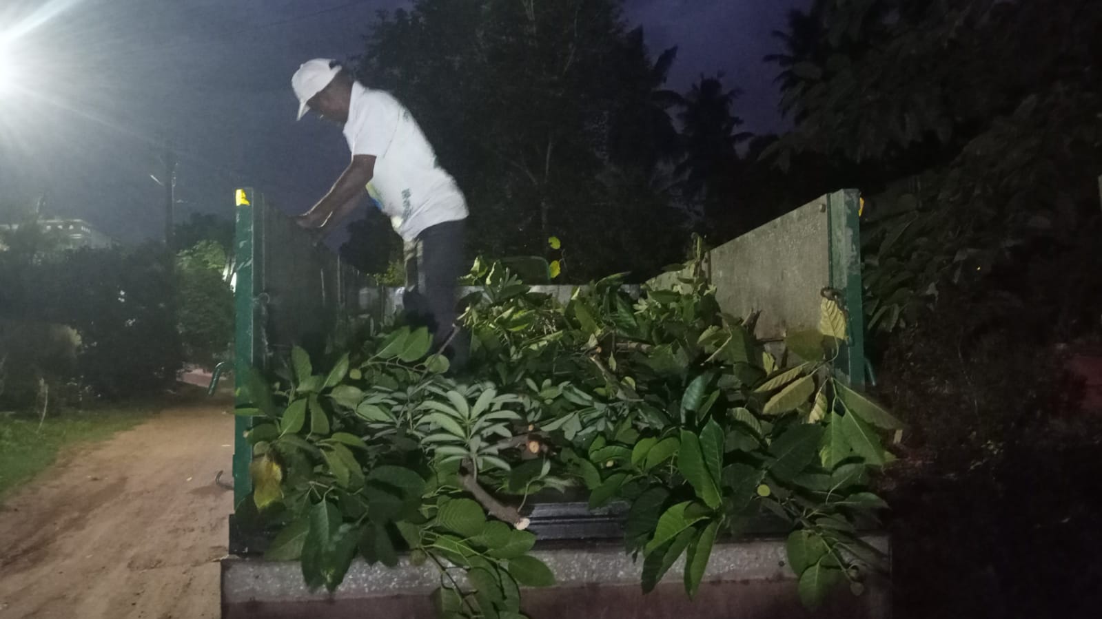 ఎత్తుగాను, ఒత్తుగాను, అదుపు తప్పి పెరిగిన రెండు చెట్లే కదంబమూ, ఏడాకుల వృక్షాలే నేటి శ్రమదాన కారణాలు! ఇందుకోసమే సుమారు నాలుగు కిలోమీటర్ల వేకువ కాల ప్రయాణం చేసి, గంటన్నరపాటు కార్యకర్తల దైహిక శ్రమ విన్యాసాలు!
