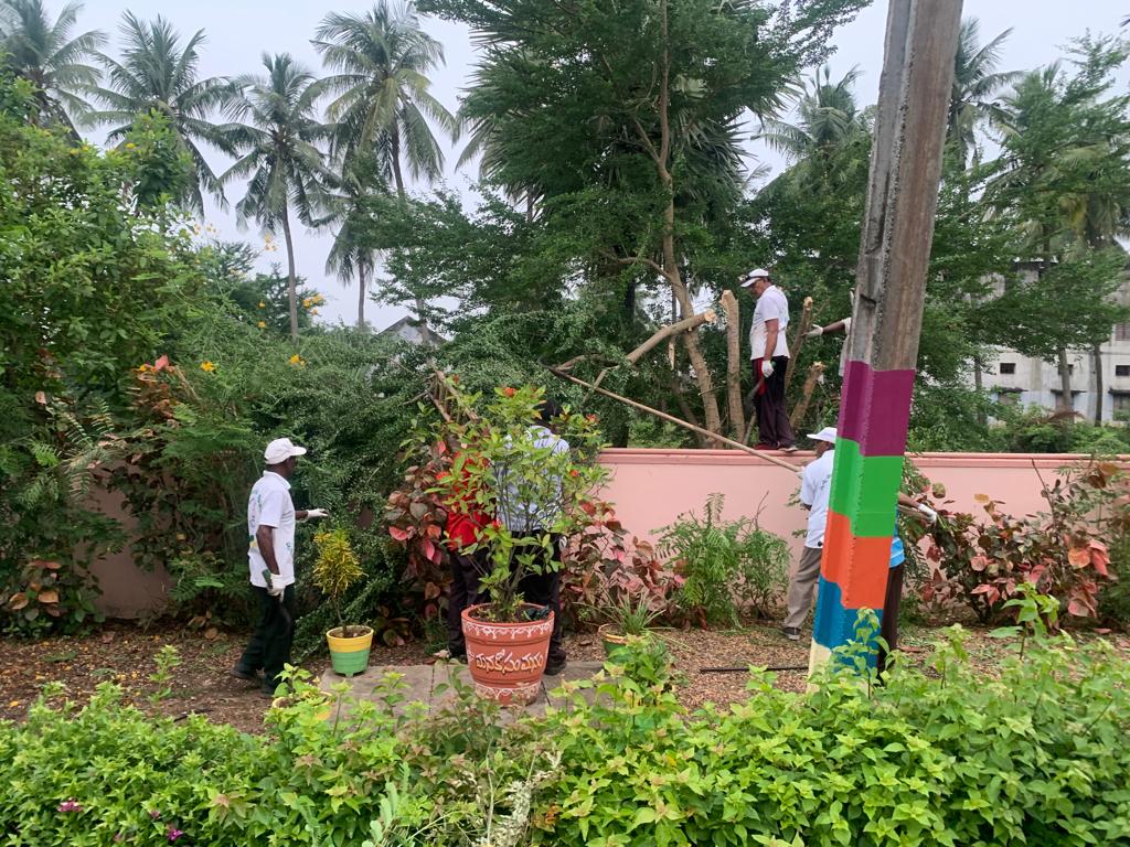 - త్వరలో అక్కడ నాటి పెంచవలసిన బంతీ, చేమంతీ, నేల గులాబి వంటి పూల వనాల కోసం నేలను గడ్డి తొలగించి, సిద్ధం చేశారు.