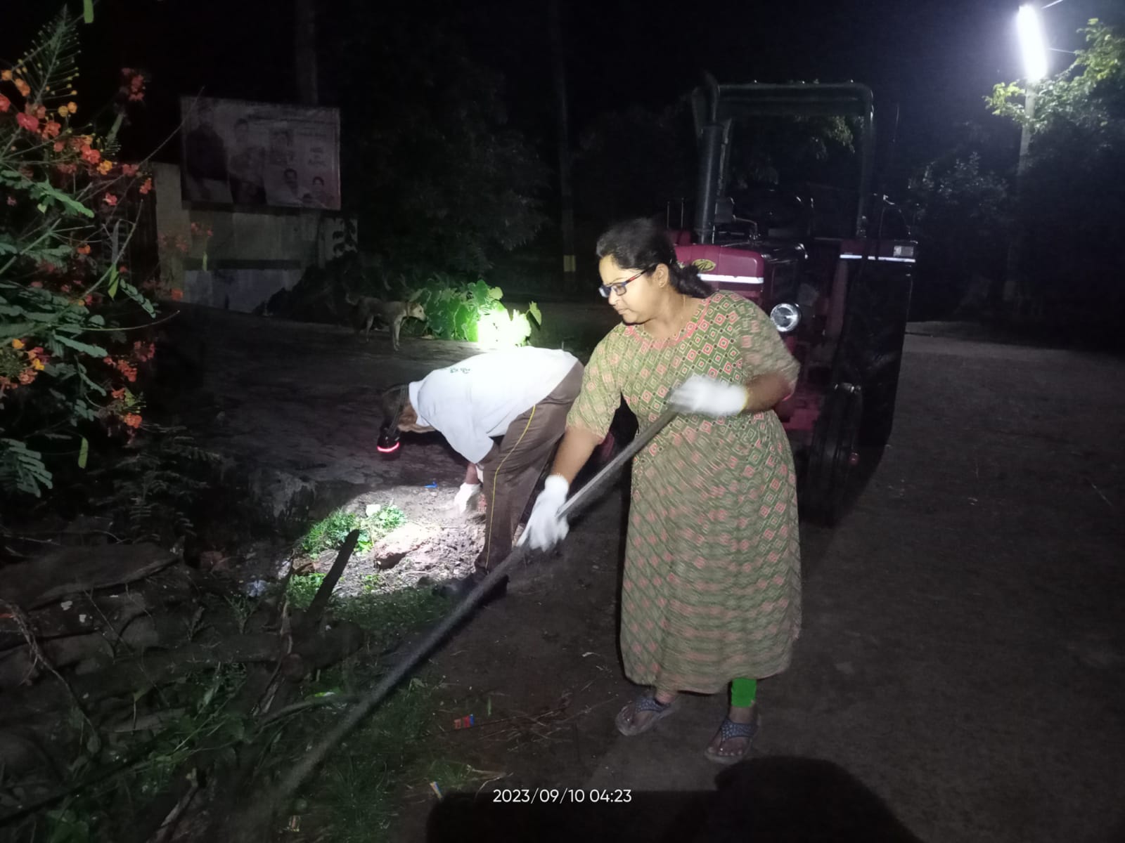 ఈ ఆదివారం (10-9-23)వేకువ కార్యకర్తల కలయిక సంకేతం బందరు వీధిలోనే ‘ప్రభుత్వ ద్రవ్యనిధి’(SBI) వద్దనేగాని, వరుణుడి చిలిపి చేష్టల వల్లబాగా తడి బారిన రోడ్డు నూడ్చుట కన్న భారతలక్ష్మి వడ్లమర వీధిలోని గడ్డి- పిచ్చి మొక్కల పనే నయమనుకొని, శ్రమ కేంద్రాన్ని మార్చడమైనది.