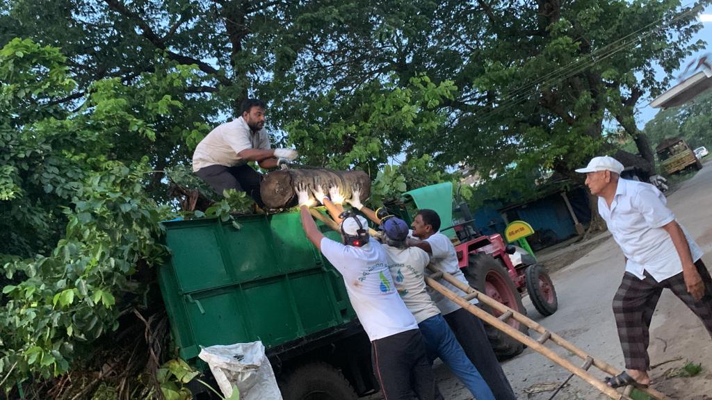 ముగ్గుర్నలుగురు చీపుళ్లతో బైపాస్ బాటను ఊడుస్తుంటే - ఇక్కడి మినీ డంపింగ్ సృష్టించిన వారు మాత్రం తలుపులే తీయకుంటే నిచ్చెన మీదుగా త్రాళ్ల సాయంతో బరువైన కొబ్బరి చెట్ల కాండం ముక్కల్ని ట్రాక్టర్ మీదికెక్కించే క్రమంలో ఒకరిద్దరు ద్విచక్ర వాహనదారులు ఇబ్బంది పడిన మాట వాస్తవం!