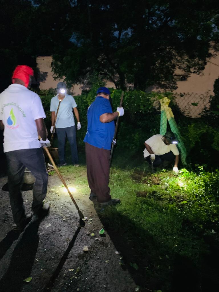 యధా ప్రకారమే పాతిక మంది అంకిత భావంగలకార్యకర్తలు - మరో 23 మంది పంచాయతీ సిబ్బంది,అధికారులు, పాత్రికేయులు - ఇంకా పాతిక మంది ప్రయాణిక ప్రేక్షకులు, అర్థరాత్రి నుండి మ్రోత మ్రోగిస్తున్నవరుణుడు శ్రమదాన వేళకు శాంతించాడు.