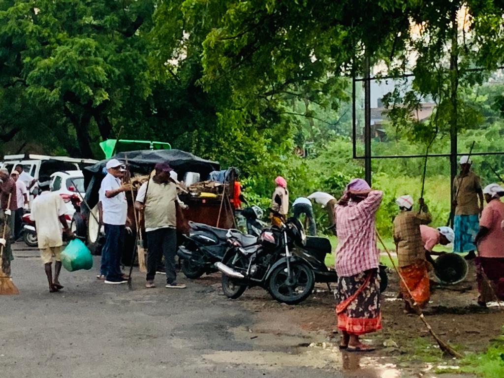 - ఆవరణ నంతా చీపుళ్లతో ఊడ్చినా స్వచ్ఛ కార్యకర్తల ముద్ర కనిపిస్తూనే ఉంటుంది.