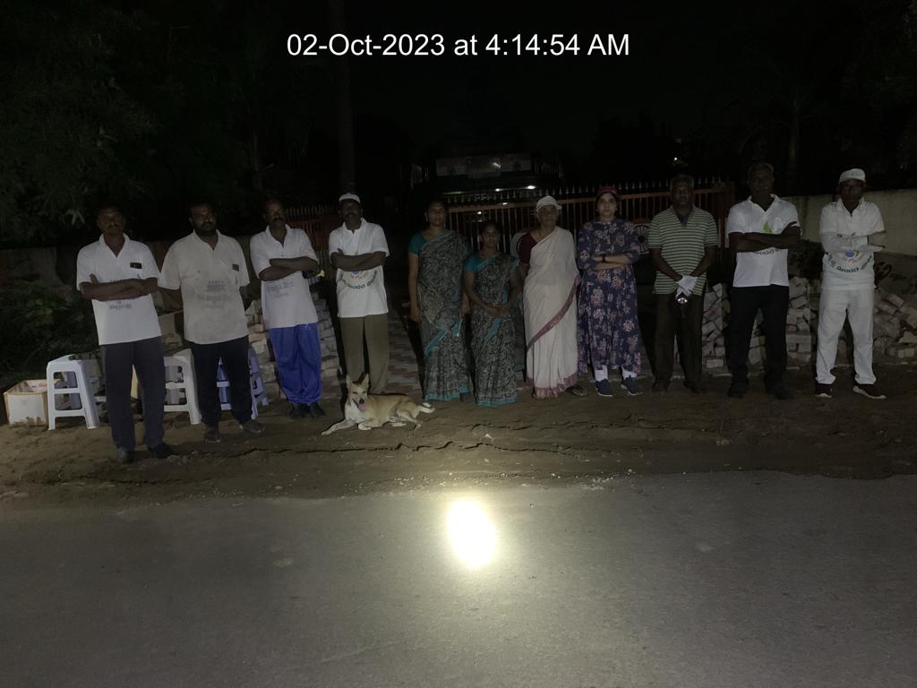 ఈ 2.10.23 బ్రహ్మ సమయాన తలా గంటన్నర పాటు - 4.14 to 6.10 AM - 200 గజాల బెజవాడ బాటను శుభ్రపరిచింది ఒకరో ఇద్దరో కారు సుమా! 33 మంది! ఇందులో కనీసం పాతిక మంది బట్టలు చెమటకు తడిశాయి - అందులో సగం మంది వంటికీ, గుడ్డలకీ బురద అంటుకొన్నది!