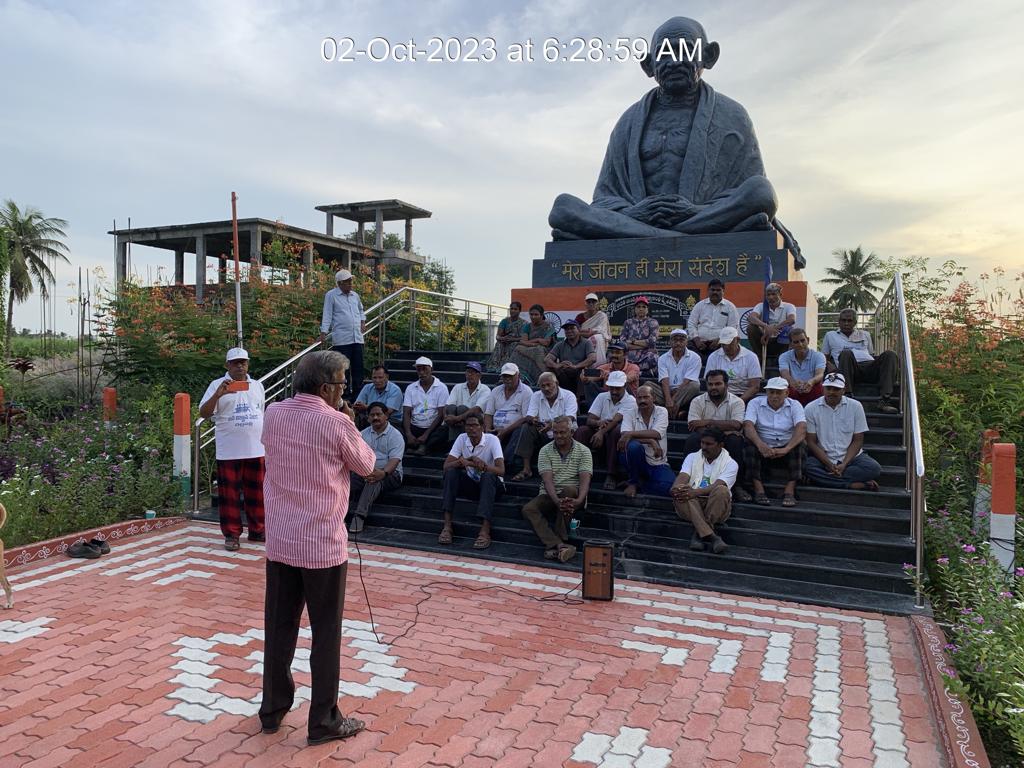 ఇక్కడొక విశేషమేమంటే – అసలీ వేళ సోమవారం కనుక శ్రమదానానికి ఆటవిడుపు, రెస్క్యూదళం వారిదే ఈవారం! ఐతే జాతిపిత జయంతి దృష్ట్యా - నిన్నటి ముగింపు వేళ - DRK గారు “ఏ కొంతమందైనా రాగలిగితే మహాత్ముని స్మారకం దగ్గర శ్రమిద్దాం” అనే అభ్యర్థనతో ఇందరు ఉత్సాహపడ్డారన్నమాట!