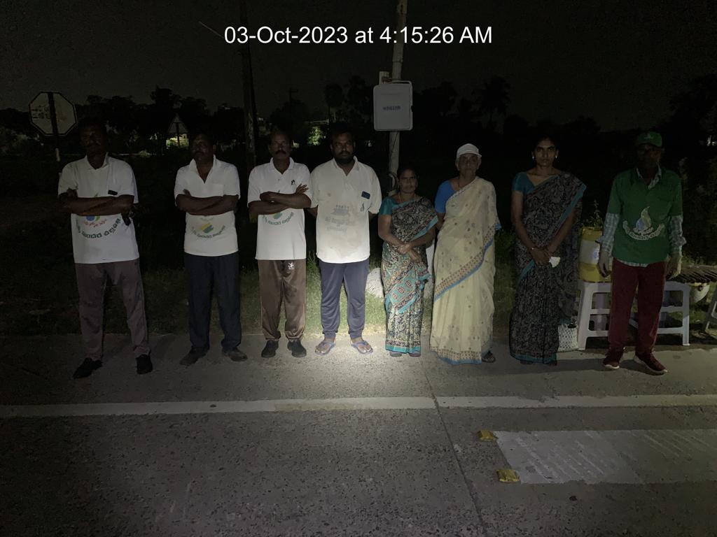 ఈ మంగళవార (3.10.23) ప్పూట కార్యకర్తల కర్మశాల గంగులవారిపాలెం దగ్గరి NH16 జాతీయ రహదారే! పాల్గొన్న కష్టజీవుల సంఖ్య - ఊరి జనాభా(24000) తో పోల్చితే 0.1% శాతమే - అంటే 24 మందే!  సంఖ్యను చిన్న చూపు చూసినా, వాళ్ల సంకల్పాన్ని తక్కువగా చూడవద్దు.