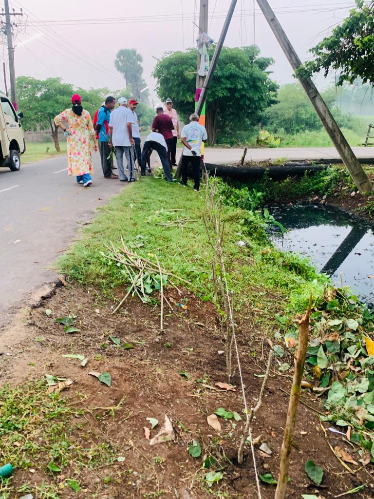 6.30 అనంతరం - అప్పటిదాకా చెట్టెక్కి కత్తితో, దిగి గునపంతో బరువు పనులు చేసిన తూములూరి లక్ష్మణరావనే సీనియర్ కార్యకర్త ముమ్మారు ఉచ్ఛరించిన గ్రామ  స్వచ్ఛ - సుందర నినాదాలతో నేటి పని ముగింపు!