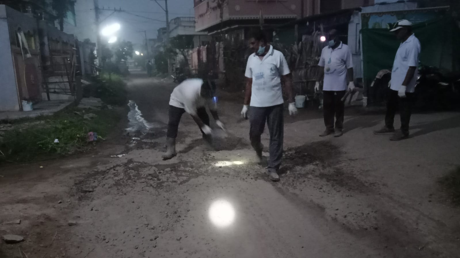 దీనికి తీసిపోని శ్రమ సౌందర్యం మరొకటి కూడ వీలైతే వాట్సప్ చిత్రంలో గమనించండి : గూళ్లు నొప్పి భరిస్తూ, ఆరేడుగురు ఊడ్చి ప్రోగులు చేసిన రాళ్ళూ - రప్పలూ, దుమ్మూ ఇసుకా చిన్న ట్రక్కు నిండి, నలుగురు కార్యకర్తలు దాన్ని1 కిలోమీటరు దూరంలోని నారాయణరావు నగర్ రోడ్ల గుంటనూ, ప్రభుత్వాస్పత్రి మలుపులోని లోతు గుంటనూ పూడ్చి, వాహన ప్రమాదాల్ని నివారించడం!
