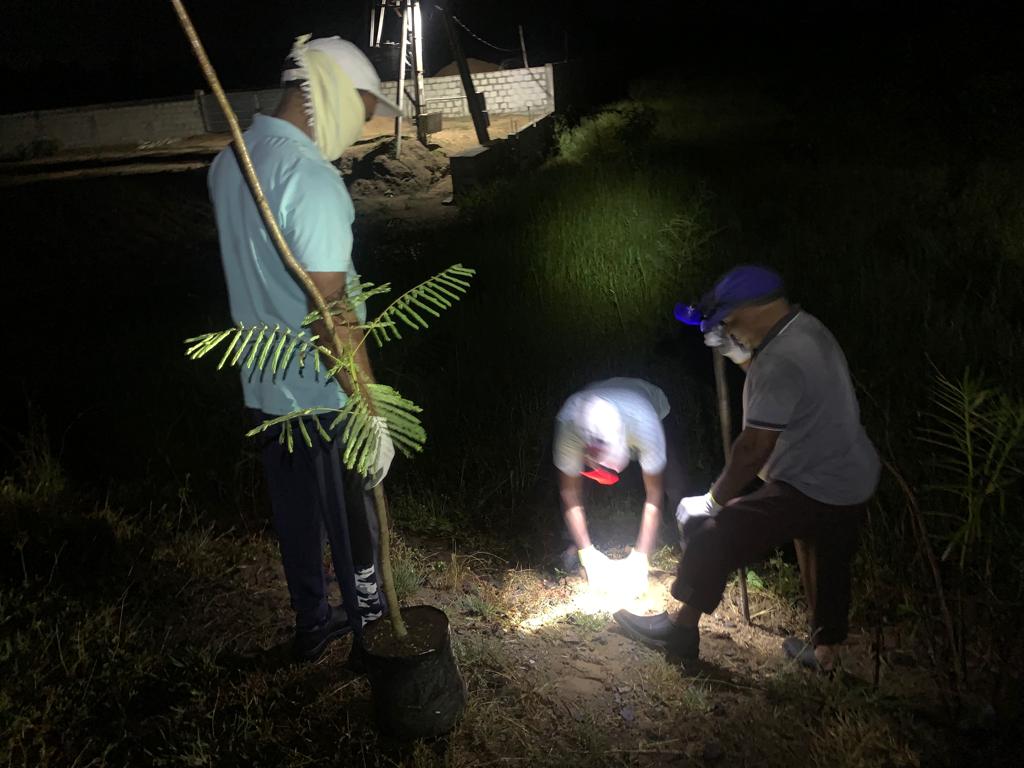 యువత ప్రాతినిధ్యం కూడ ఉన్న, ధ్యాన మండలి, లయన్స్ వంటి వారి ప్రమేయమున్న ఈ ఉదయం 4.20 - 6.16 నడుమ 2 గంటల పాటు కేవలం 58 చెట్లు నాటడమే కాదు – నిన్న పొరపాటున సరైన చోట్ల గుంటలు త్రవ్వక- ఈ వేళ మళ్లీ అనువైన చోట్ల త్రవ్వే పని వల్ల జాప్యం జరిగింది.
