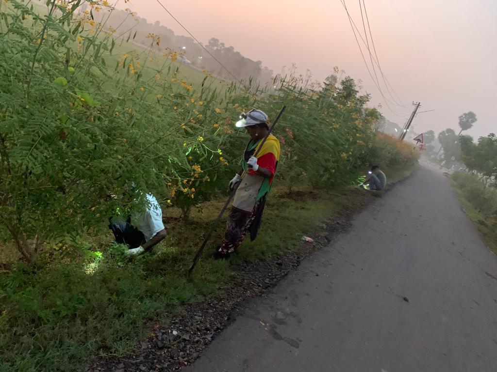 ఇవాళ చేయడానికి పని తగ్గినట్లుంది. ఆరేడుగురు వంతెన దగ్గర నుండి మురుగు కాల్వ గట్టును శుభ్రపరిచారు. మరో నలుగురు వంతెన ప్రాంతాన్ని సుందరీకరించారు. సుందరీకరణ బృందం రహదారి కూడల్ని ఎంతగానో చదును చేసి, రెండు రోడ్ల గుంటలు పూడ్చి, మెరుగులు దిద్దారు!