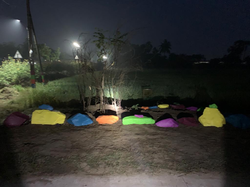 ఈ పూట వాళ్ల కార్యరంగం మరొక మారు గంగులవారిపాలెం సమీపంలోని ఉప రహదారిగానూ, పని వేళ 4.25 - 6.12 గానూ తేలింది. NH216 చల్లపల్లి మలుపు దగ్గర మొన్న పెట్టిన పూల మొక్కల దగ్గర నిలబడి ఏదో ప్రణాళిక రచిస్తున్న వాలంటీర్లు కనిపిస్తున్నారా?