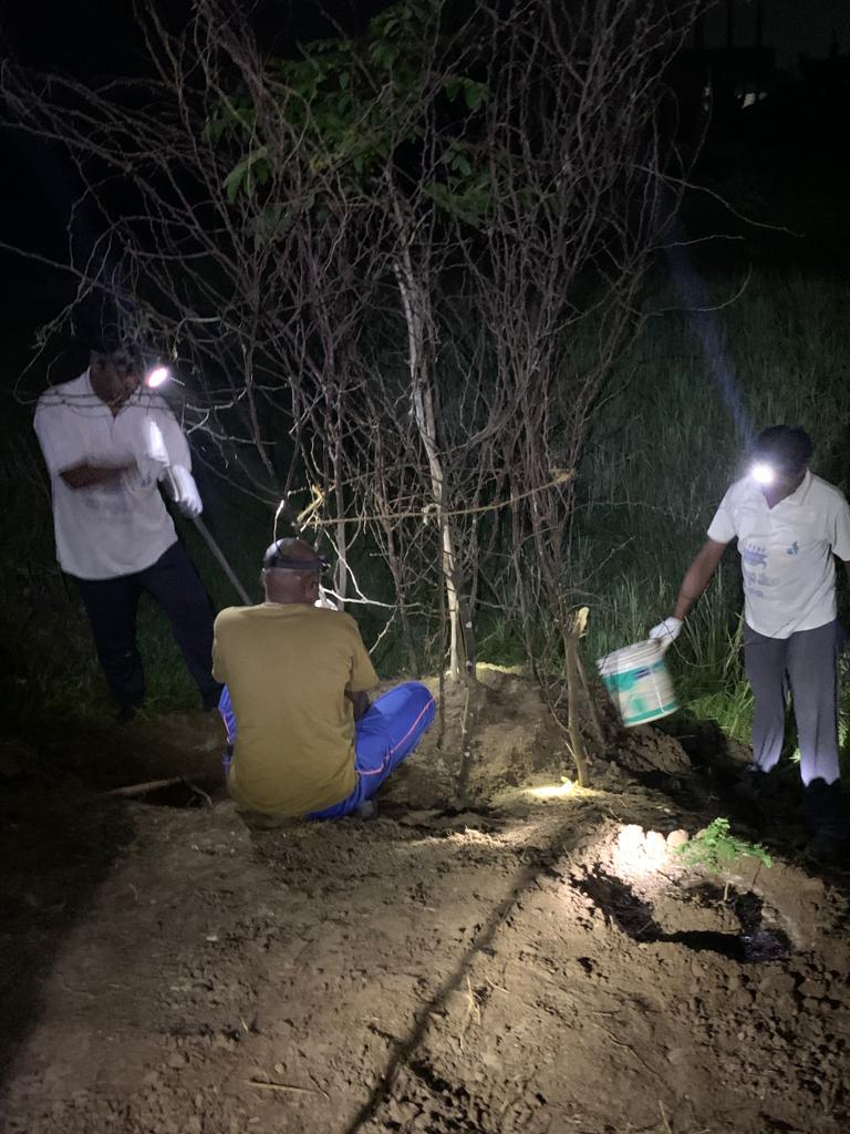 చిన్నపాటి పారిశుద్ధ్య లోపాల్ని చక్కదిద్దాక గునపాలు తీసుకొని బండ్రేవుకోడు వంతెన - దాకా 16 లాంటానా, గద్ద గోరు పూల మొక్కలు నాటారు. అసలిక్కడ ఏడడుగులకొక మొక్క పెరుగుతూ, పూస్తూ 16 మొక్కలెలా నాటారంటే - మూడో నాలుగో చిన్న మొక్కలు బ్రతకలేదు. మిగిలిన డజను పూల చెట్లూ ఇరికించి నాటినవే!