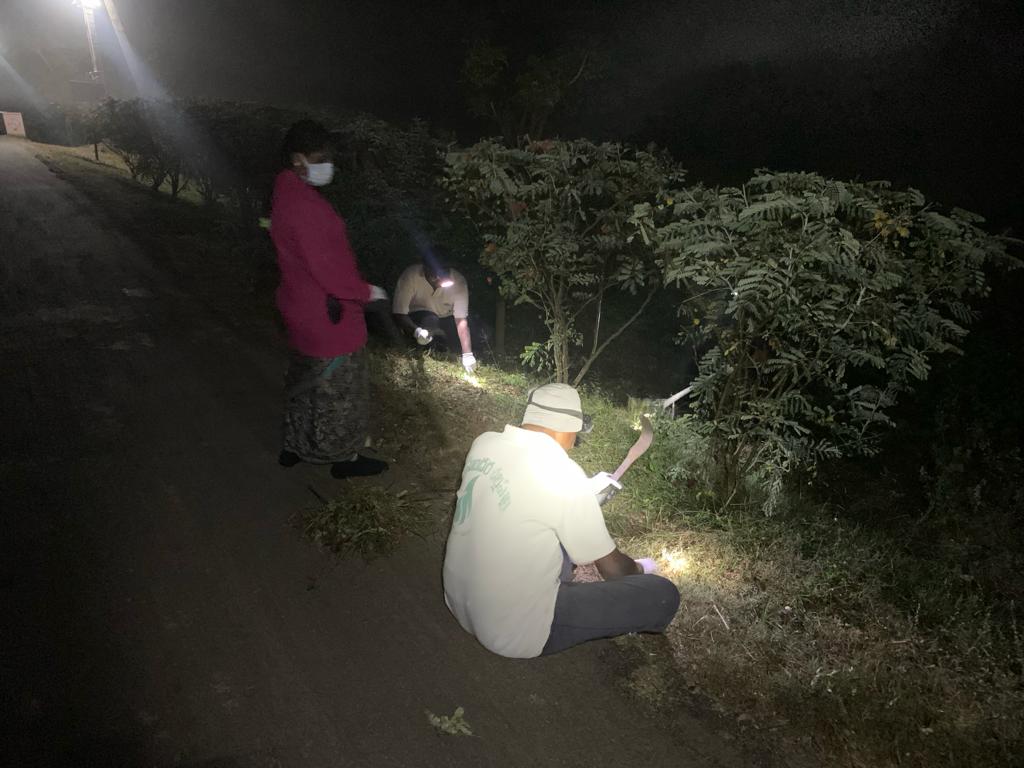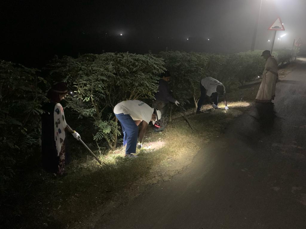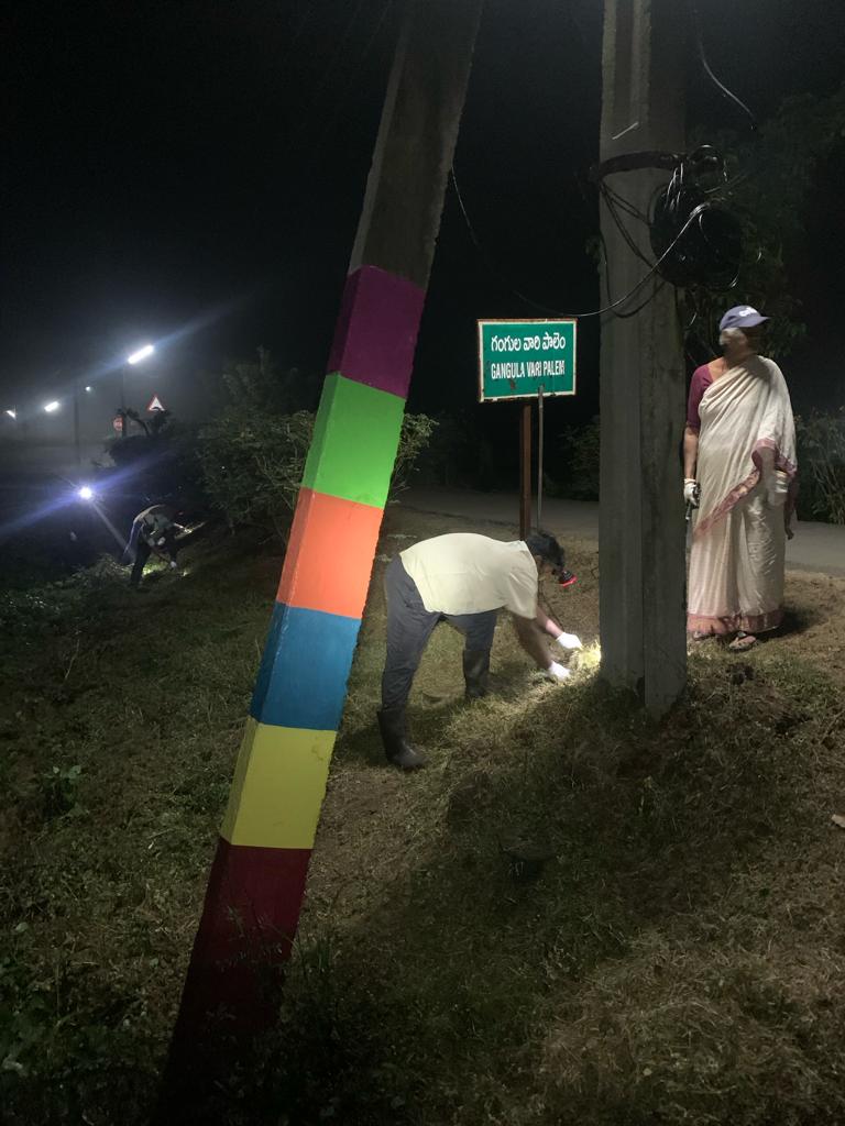 ముగ్గురు రైల్వే పారల్తో, అదే దిక్కున - కాల్వ అంచును అందగించినా, వీళ్ళకు దూరంగా - బందరు రహదారి మీద ఒకే ఒక కార్యకర్త గంటకు పైగా - శ్రమించినా -