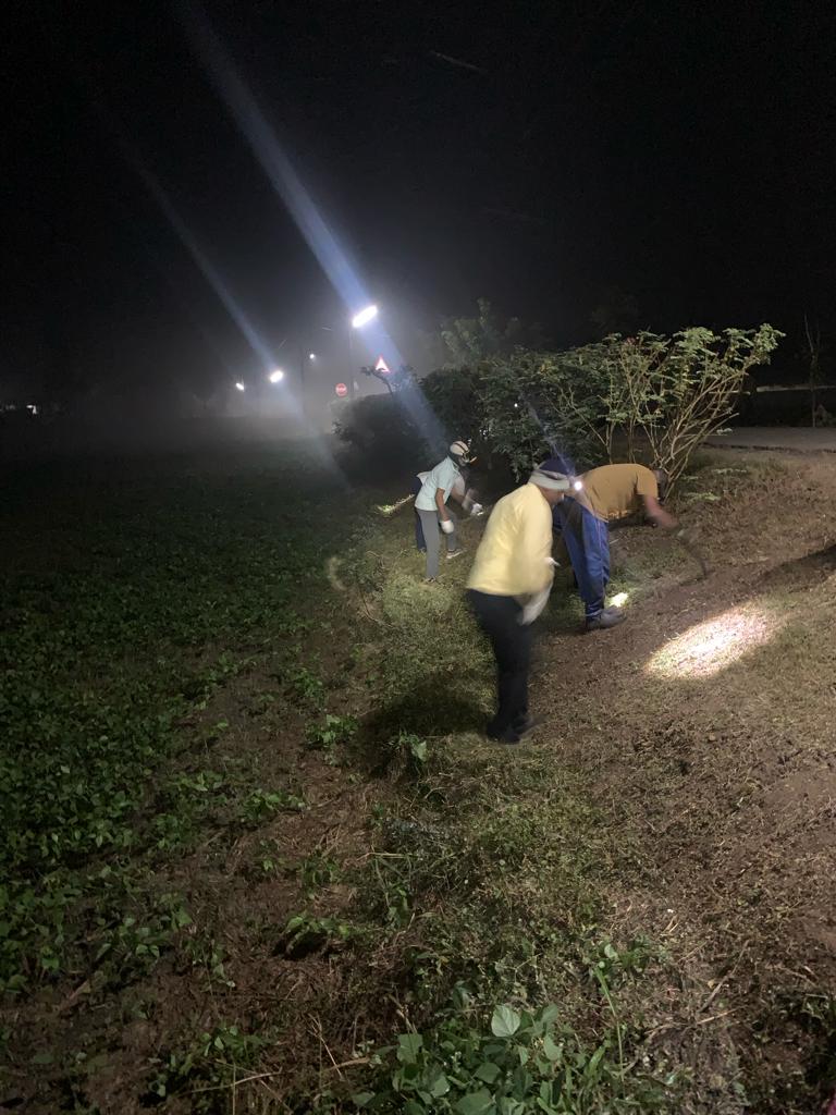 వంతెన - NH216 ల నడుమ ఏడెనిమిది మంది తళుక్కుమనే అద్దంలాగా శుభ్ర - సుందరీకరించినా;
