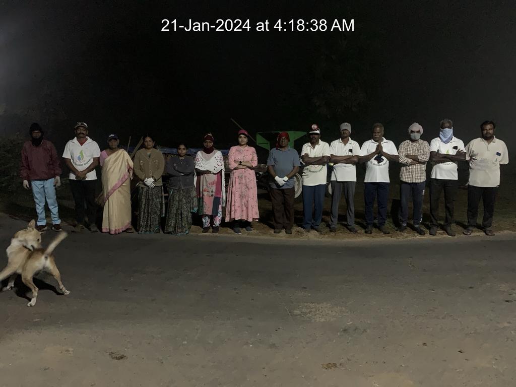 ఆదివారం – (21.01.2024) వేకువ 4.18 కే – గంగులవారిపాలెం మురుక్కాల్వ మలుపులో 15 మందితో మొదలైన ఆ వేడుక 6.30 దాక కొనసాగుతూనే ఉన్నది! ఏమైనా సరే – “ఈ ఆదివారంతో ఇక్కడి వంకబెట్టలేని స్వచ్ఛ – శుభ్ర వైభవం పూర్తి కావాలసిందే” అనే పంతం నెగ్గించుకొన్నారు – 35 మంది కార్యకర్తలు!