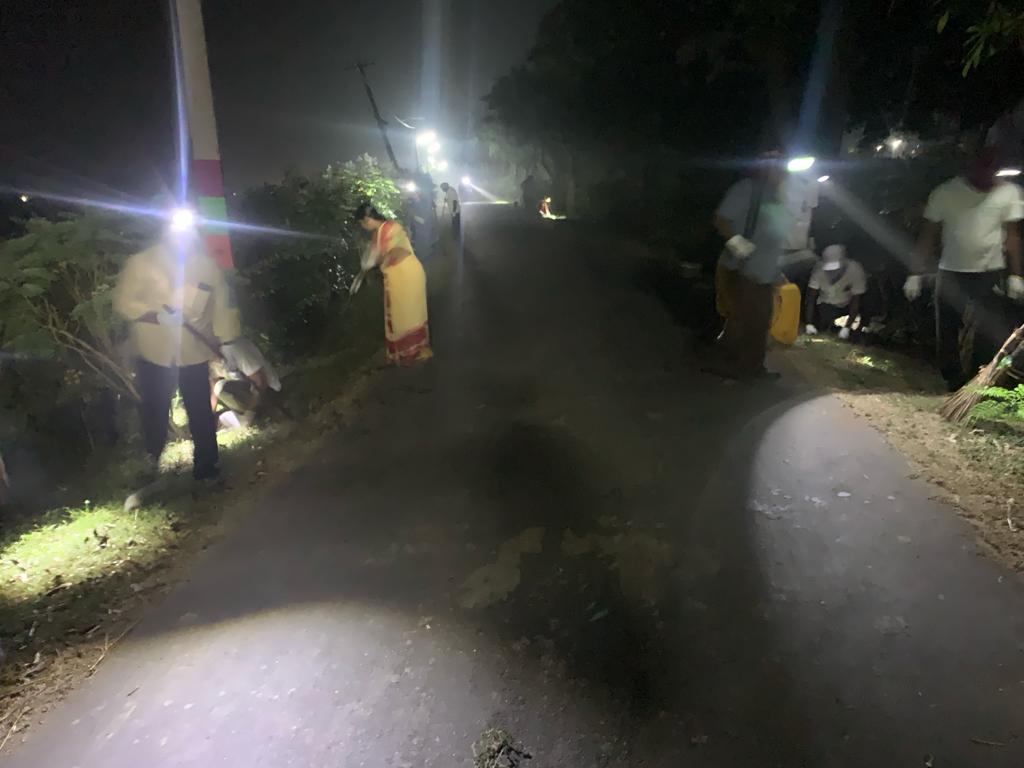 రోడ్డు మూల నుండి దక్షిణంగా (దాని మీద ఇప్పటికీ ఐదారుగురికి బహిరంగ మలమూత్ర విసర్జనా హక్కులున్నవట !) కాల్వ గట్టును శుభ్రం చేశారు!