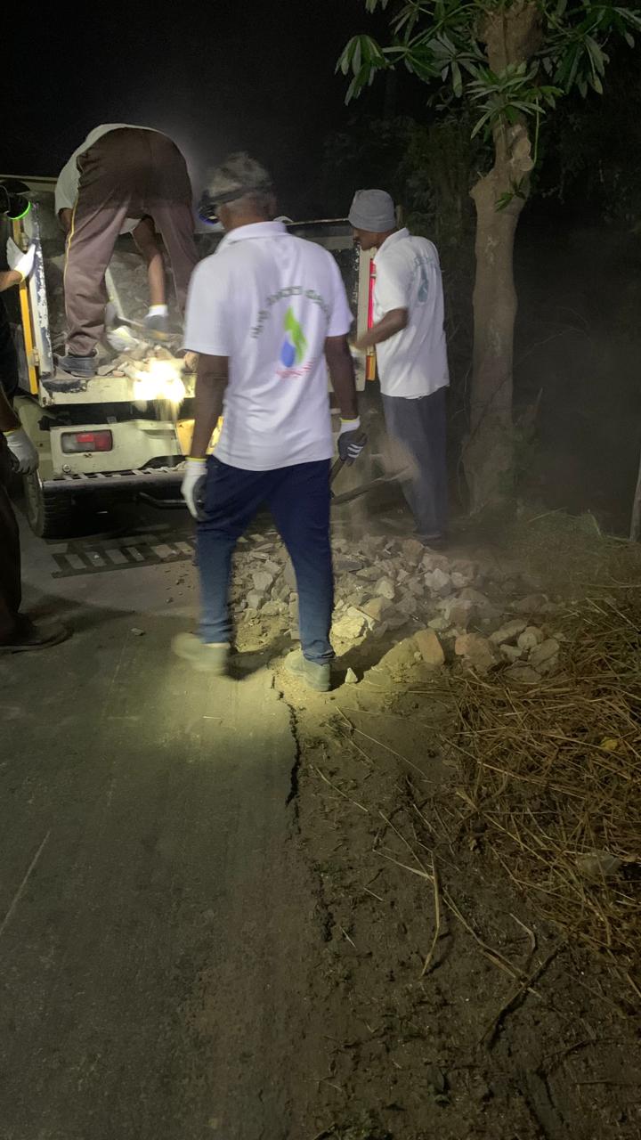 అక్కడ పొలంలోని అదనపు నీరూ, వాన నీరూ ప్రధాన మురుగు కాల్వలో కలిపే తూము వద్ద నీరు లీకై, ఇరుకు రోడ్డు కావడాన పెద్దవాహనాల బరువుకు దెబ్బతిన్నది. ఈపూట సేకరించిన రద్దులో సగానికి పైగా దాని మరమ్మత్తుకు సరిపోయింది.