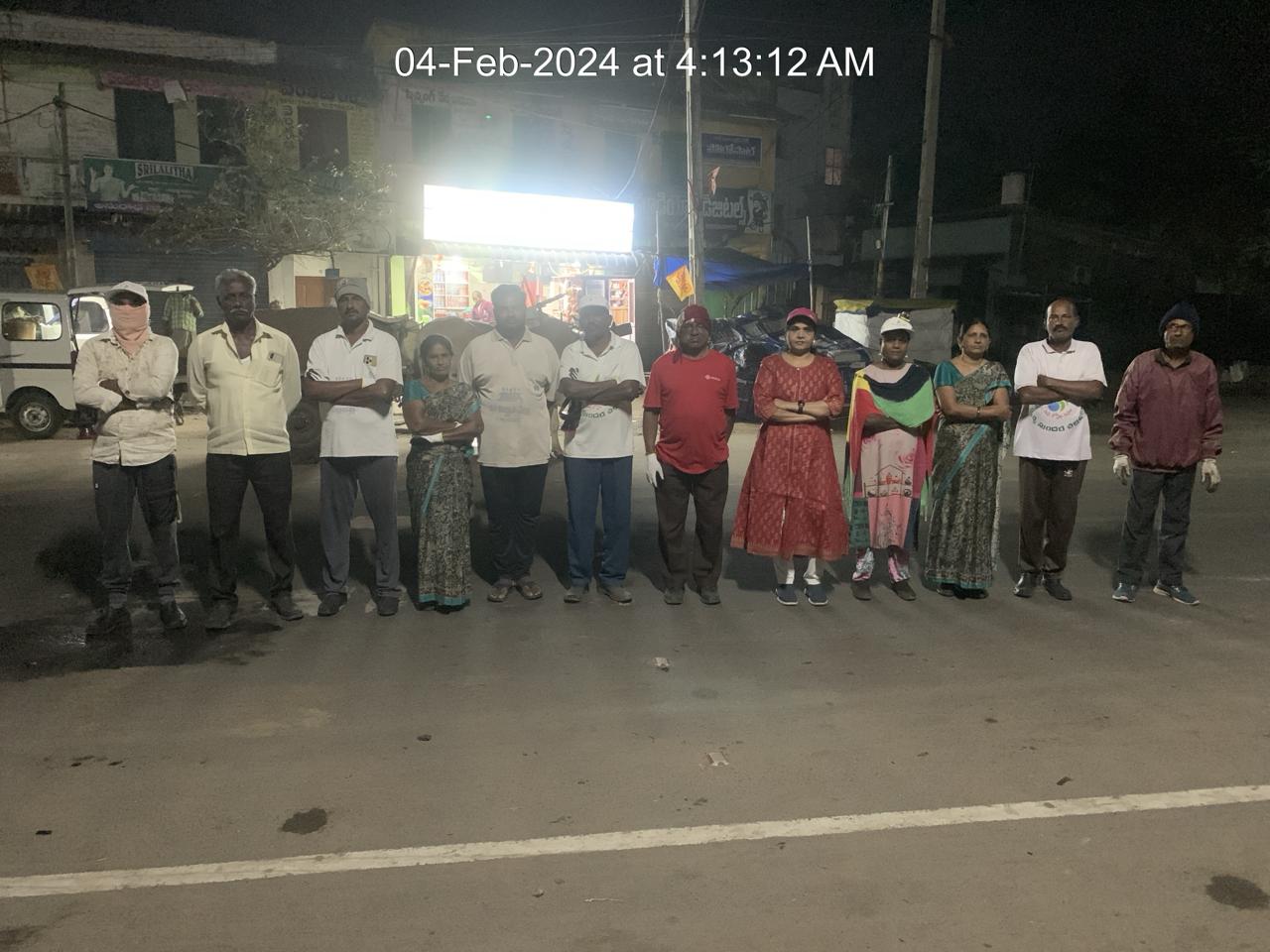 5-2-24 నాడు అది 15 మంది, ఆదివారమైనందునేమో కార్యకర్తల సంఖ్య పెరిగి పెరిగి 45 కు చేరింది. ఇది జరిగింది సంత వీధి నుండి 3 రోడ్ల సెంటర్ల మధ్య. పని అయిష్టంగా ముగిసింది 6.15 కు.