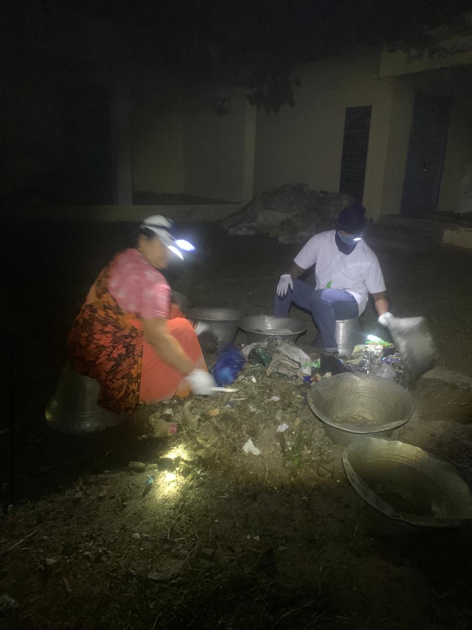 చుట్టూ డిప్పలూ - మధ్య ఇద్దరు చెత్త విభజనా నిపుణులూ!