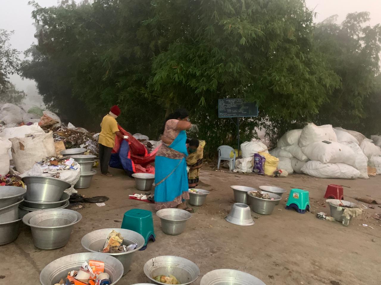 బుధవారం(28.2.14) వేకువ సైతం ఊరికి దూరంగా, చిల్లలవాగు గట్టున గల చెత్త సంపద కేంద్రపు 4 రోడ్ల కూడలిలోనే 24+2 మంది శ్రమ సమర్పితం! వీరు కాక చెత్త కొనుగోలుదారులిద్దరు చివరికక్కడ ప్రత్యక్షం!