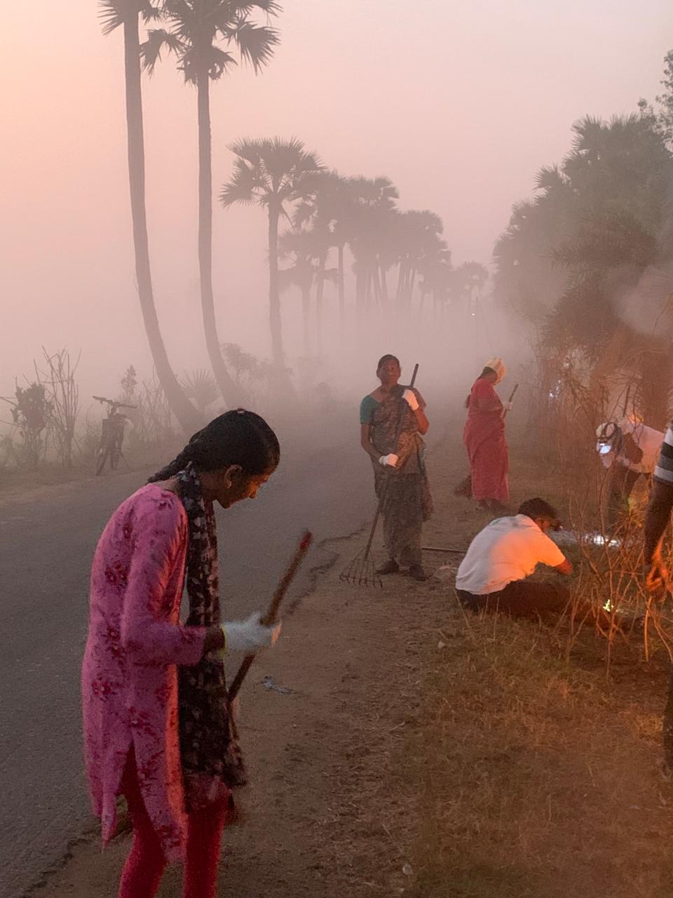 ఏ కొంచెమో తగ్గినా ఈ వేకువ సైతం చలీ - మంచూ అనుక్షణం కార్యకర్తల్ని అనుసరిస్తూనే ఉన్నాయి! ఈ ఉదయం కూడ వేంకటాపురీయులైన ఒకరూ, విద్యార్థులూ ఊరికి దూరంగా ఉన్నా శ్రమదానానికి విచ్చేశారు!