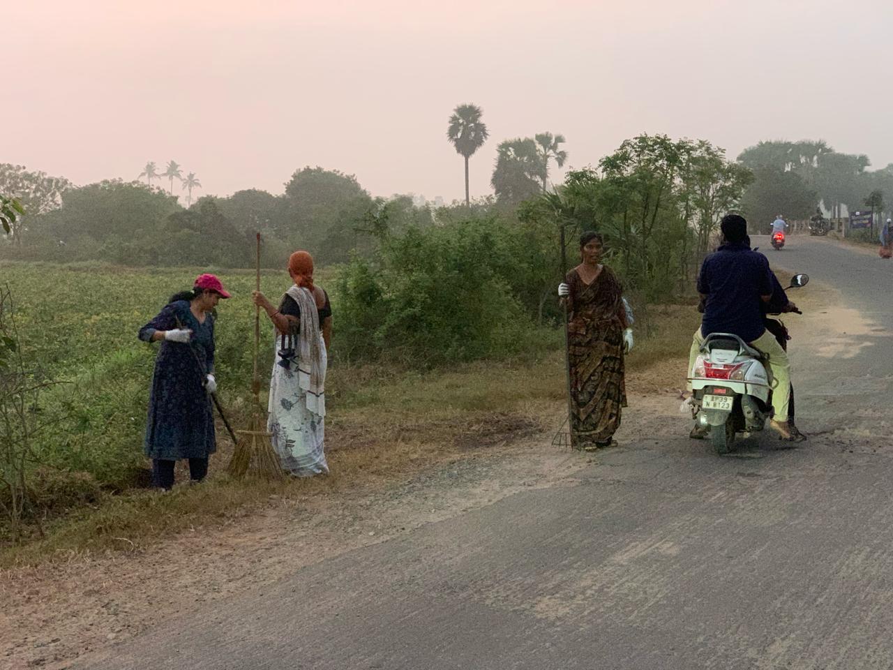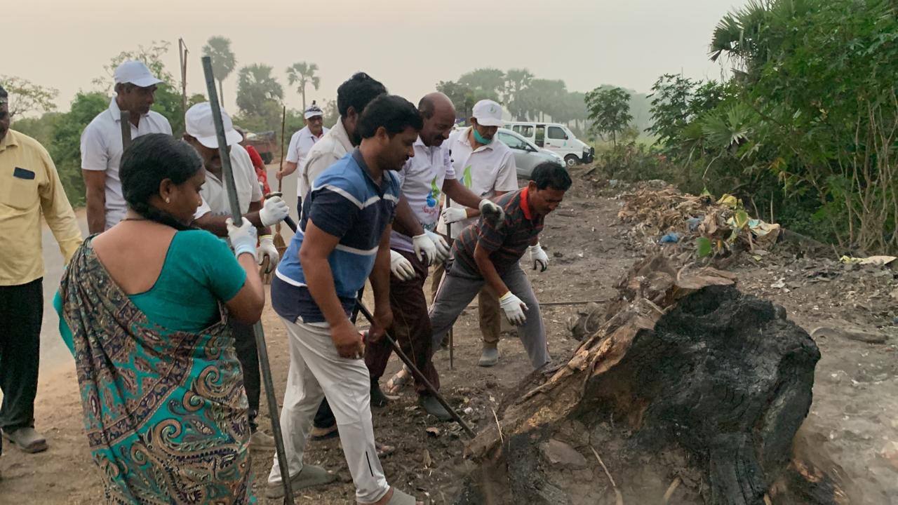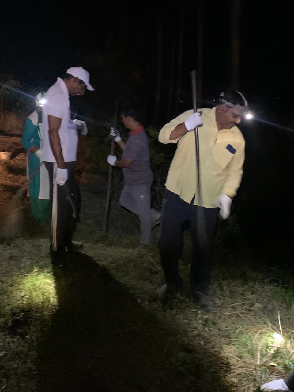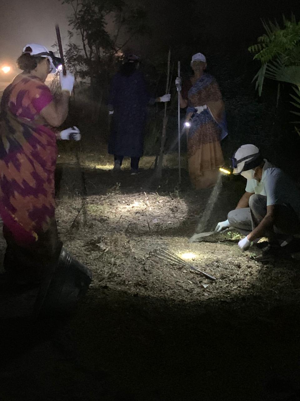 ఇక అక్కడి నుండి సుమారు 2 గంటల పాటు_డజను మంది స్త్రీ కార్యకర్తల్తో సహా - ఒక దశలో 36 మంది సముచిత శ్రమదానం! ఫాన్ల క్రింద - ఎయిర్ కండిషనర్ల సమక్షంలో ఉద్యోగం కాదు - బూడిద, దుమ్ము, ఇసుకల్లో దంతెలతో – కత్తులతో – చీపుళ్లతో - చీకటి వేళ చేస్తున్న బరువు, మురికి పని!