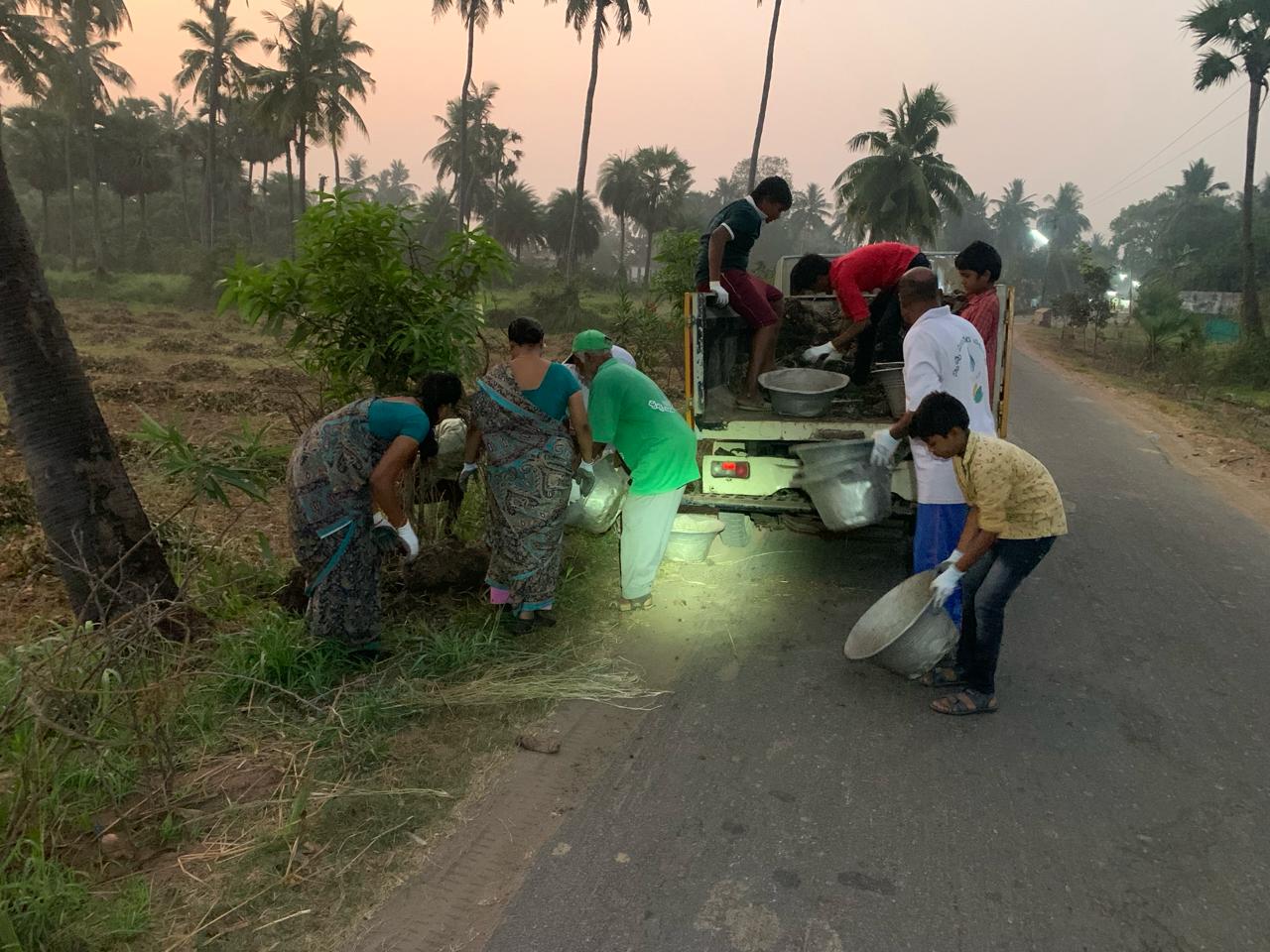 బుధవారం (13-3-24) వేకువ 4:25 కే చల్లపల్లికి నాలుగైదు కిలోమీటర్ల దూరంగా శివరామ వెంకటాపురాల మధ్యస్తంగా మొదలైన సదరు శ్రమ 6:20 కి ముగిసింది. నేటి రహదారి సంస్కారక – పండ్ల చెట్ల సంరక్షక శ్రామికులు 33 మంది.