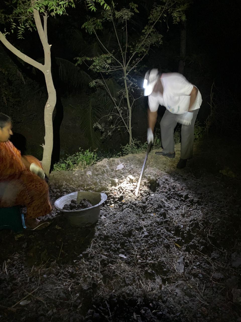ఐదారుగురు గునపాలతోనూ, పారల్తోనూ మట్టి దిబ్బల్ని త్రవ్వేస్తుండగా - ఏడెనిమిది మంది ఆ గడ్డల్నీ, పొడినీ డిప్పల్లో నింపుతుండగా – ఆ బరువు డిప్పల్ని కొందరు గట్టి వాళ్లు అవలీలగా మోసి, టాటా ఏస్ లో నింపగా – శివరాంపురం దగ్గరి పండ్ల చెట్ల వద్దకు పోతున్న గురవారెడ్డి వాహనాన్ని 10 మంది పొలోమని అనుసరిస్తుండగా - అంతే ఉత్సాహంతో సదరు మన్నును 3 రకాల పళ్ళ చెట్ల పాదుల్లో సర్దుతుండగా..... “ఇదొక అరుదైన అద్భుత సామూహిక శ్రమవేడుక” అని కాక మరేమనాలి?