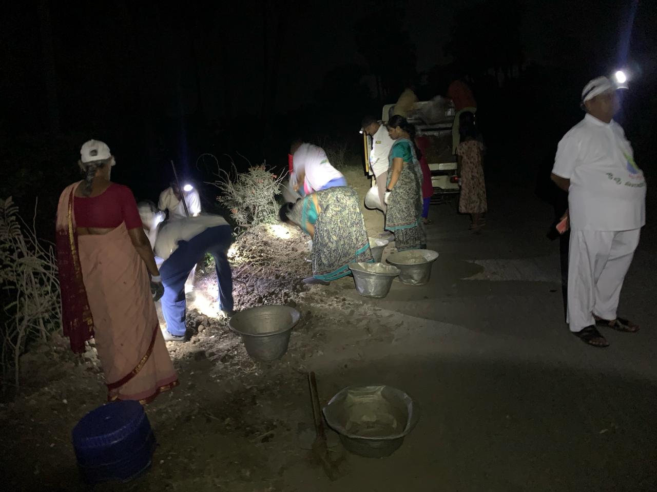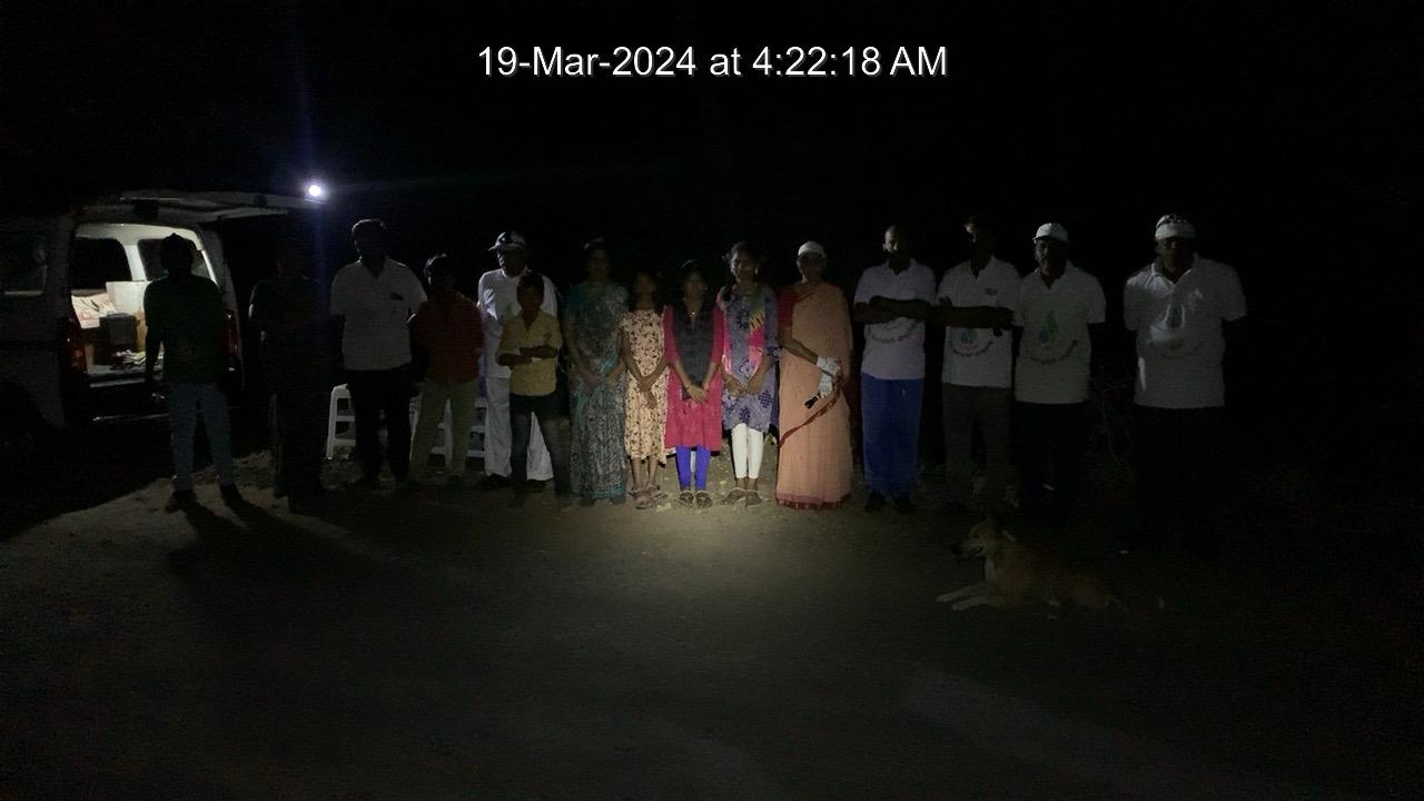 19.3.24 (మంగళవారం) వేకువన తారీఖైతే మారింది గాని, కార్యకర్తల సంఖ్య మారలేదు - 21 మందే; మళ్ళీ శివరాంపురం దగ్గరి గుంటల రోడ్డే; 4:22 – 6:15 సమయమే, మట్టి గుట్టల్ని త్రవ్వి - ట్రక్కులో నింపుకొని – ఎక్కడ పూల, పండ్ల మొక్కల పాదుల్లో అవసరముందో కనిపెట్టి, మొక్కలకు ముళ్ల కంచె చెడకుండా పాదుల్లో పోసి, సర్దే పనులే!