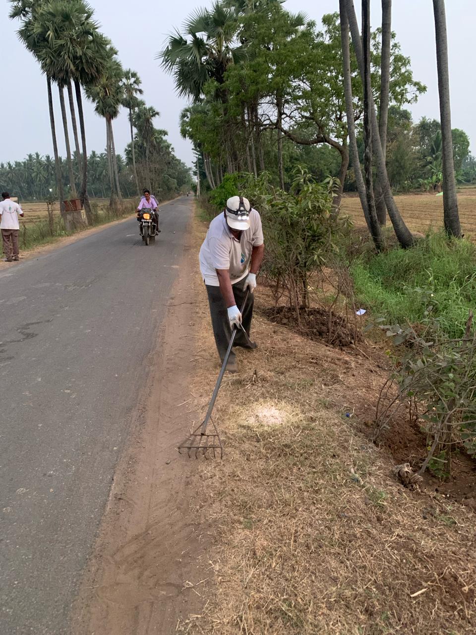 కొద్ది సమయానికే మట్టి పని ఐపోయి, రోడ్డు కిరువైపులా గడ్డీ-పిచ్చిమొక్కల మీద, ప్లాస్టిక్ వ్యర్థాల మీద - కొందరు కత్తుల్తో, కొందరు దంతెలతో, మరికొందరు చీపుళ్లతో విరుచుకుపడ్డారు . బాట కుడి ప్రక్కన కూడ చిన్న డొంకదారినీ శుభ్రపరిచారు.
