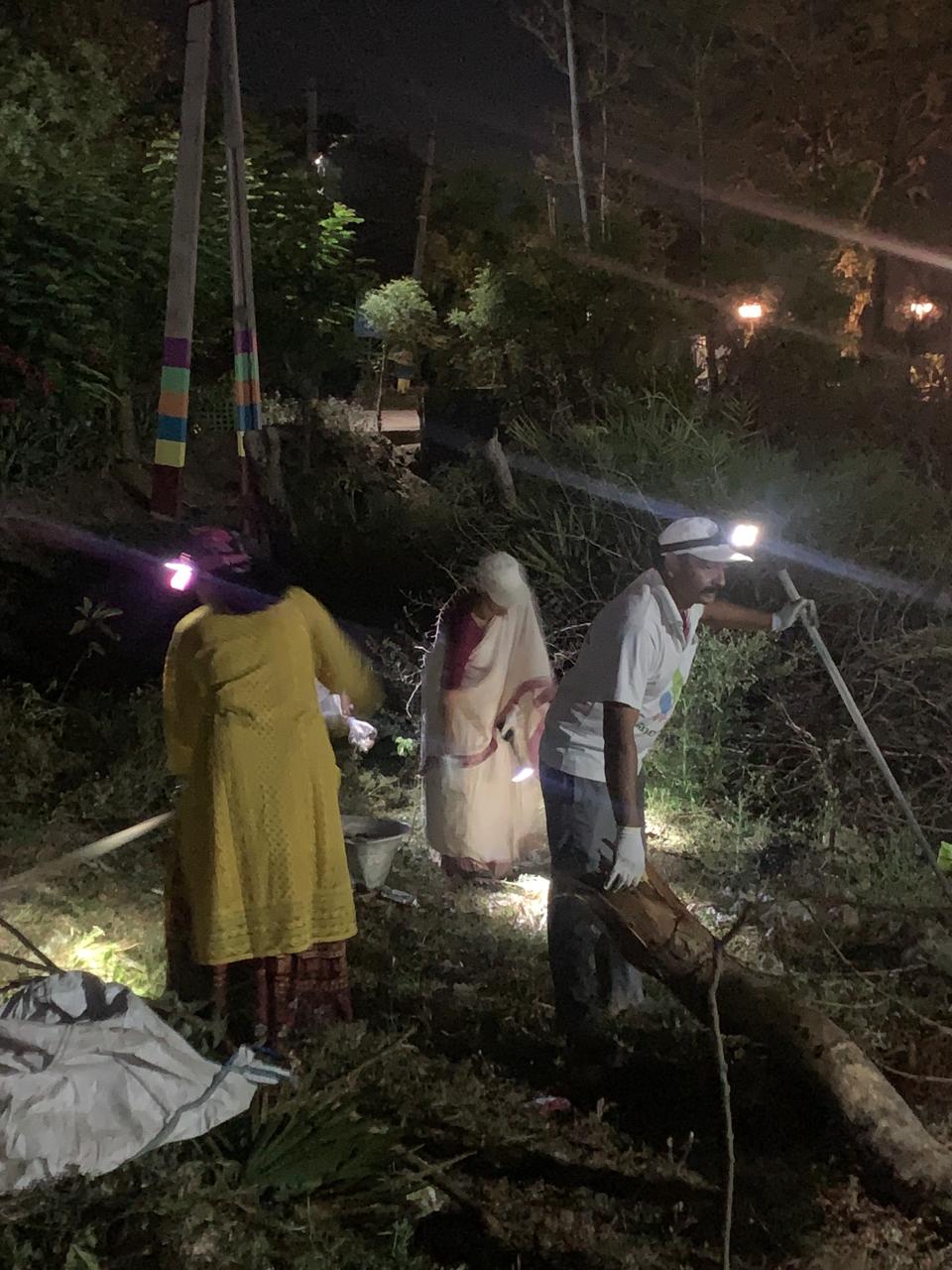 దానికి 60-70 గజాల దక్షిణంగా- నిర్మాణంలో ఉన్న కాలనీ తొలి వీధి వద్ద మరో 10 మంది కత్తులతో, దంతెలతో, చీపుళ్ళతో కాలుష్యం మీద చెలరేగి నది మరొక మరపురాని శ్రమ సన్ని వేశం! నీళ్లింకి పోయిన ఆ లోతైన మురుగు కాల్వలో అన్ని ప్లాస్టిక్ వస్తువులు ఎలా వస్తాయో తెలియదు.