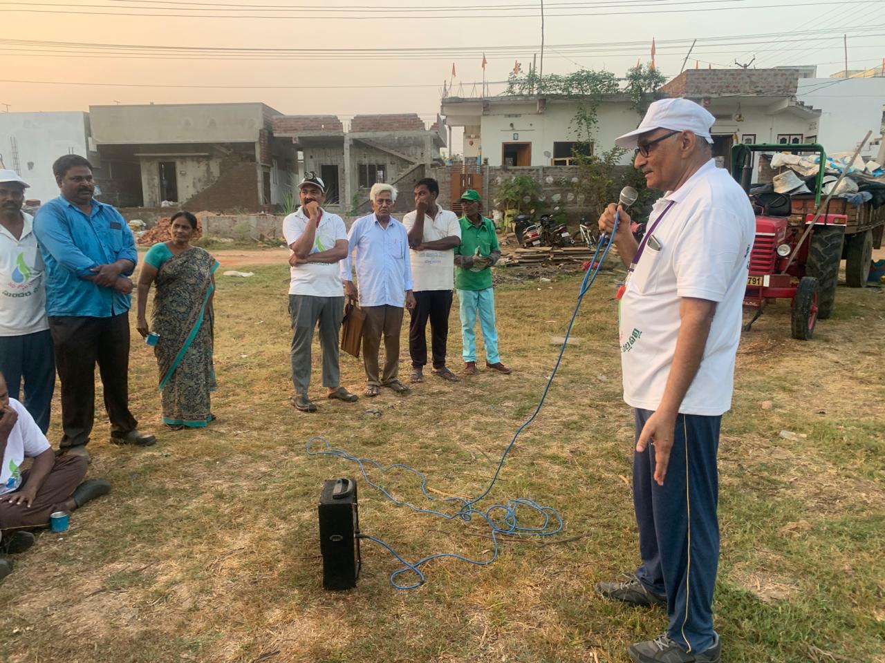వాటన్నిటిని తొలగించకపోతే తమ ఊరి వీధుల అందం తెలియదనుకొనే కార్యకర్తలు – కాల్వ గట్టున పెరిగే పనికిరాని మొక్కల్ని నరికేశారు, బాటనూ దాని మార్జిన్లనూ ఊడ్చారు, నీటి- మద్యం సీసాల్ని ఏరారు, కాల్వలోని గడ్డినీ అంతం చేశారు! గంటన్నరకు పైగా ఇలా శ్రమిస్తున్న కార్యకర్తలతో బాటు పని చేయలేదు గాని – ఏవో సూచనలిస్తున్న ఒక వ్యక్తిని గమనించారు!