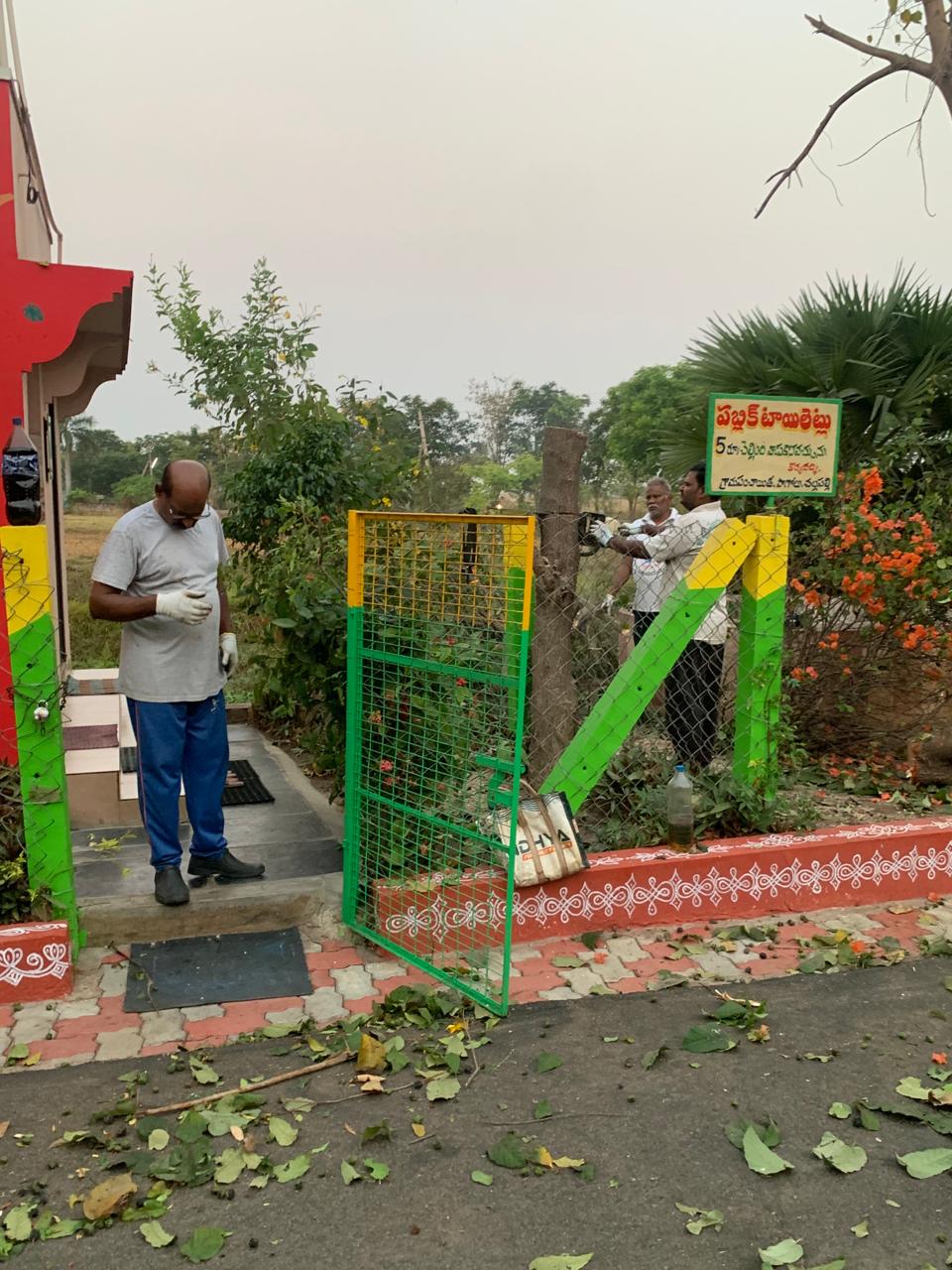 అందుకే ఈ ఏప్రిల్ మాసారంభ సోమవారం 4 గురు అసలు కార్యకర్తలూ, స్వచ్ఛ - సుందర టాయిలెట్ల పని చూసుకొనే కుర్రాడూ, వీళ్లకు అండా - దండా ఐన శాస్త్రీజీ, ఆలస్యంగా నేనూ పాగోలు పరిధిలోని – నాగాయలంక మార్గంలో గల పబ్లిక్ టాయిలెట్ల దగ్గర చేరాం!