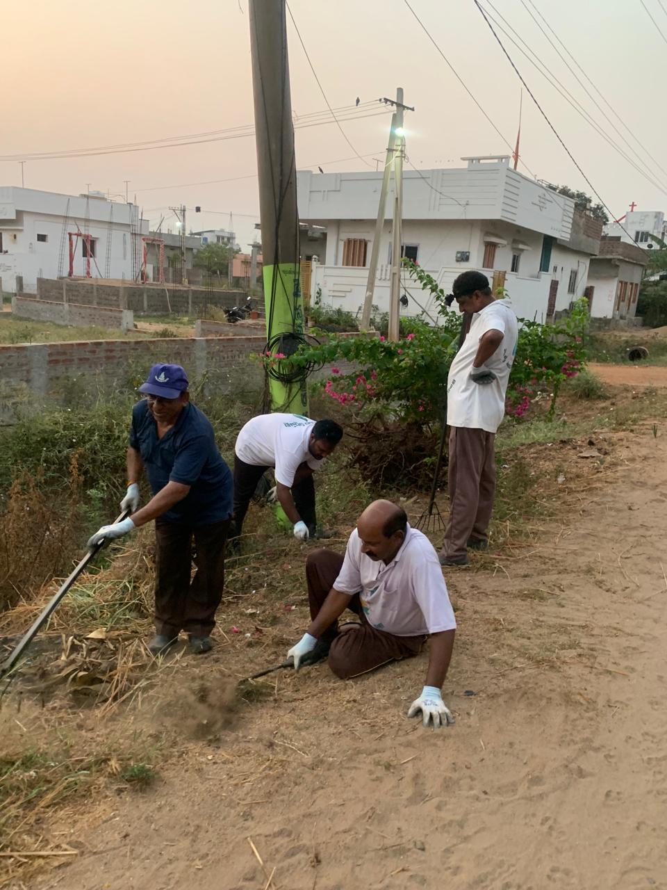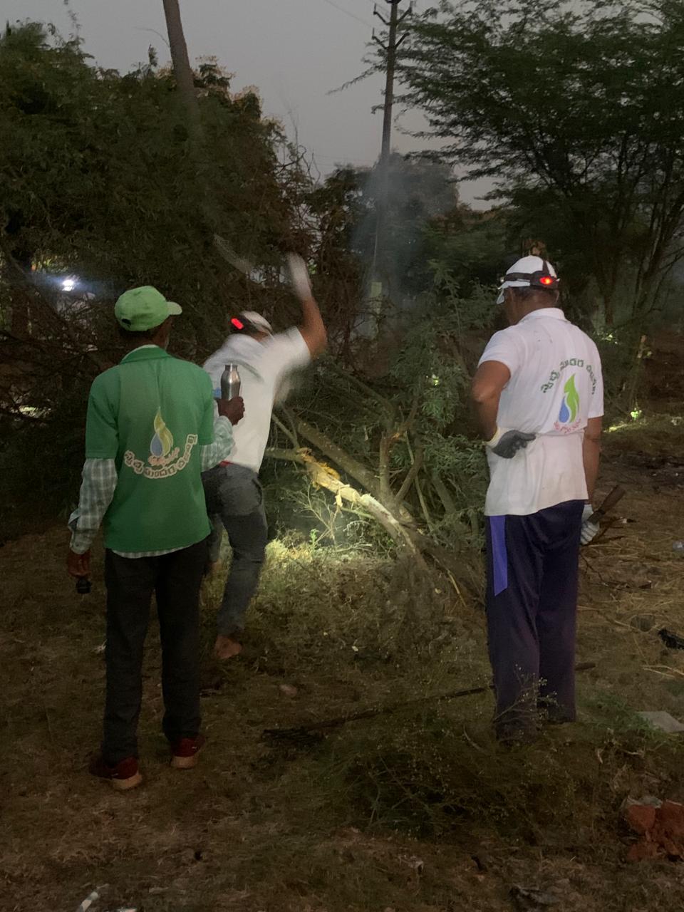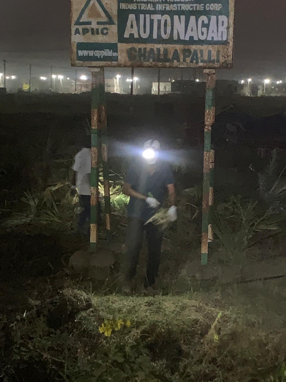 అది 5-4-24 - శుక్రవారం వేకువ 4.18-6.10 సమయానిది. శ్రమజీవులు 20 మంది; శ్రమ ప్రదేశం విజయవాడ రోడ్డులో కాటాల ఎదుటి డ్రైను ఉభయ గట్లూ, 70-80 గజాల రహదారీ! కొసరుగా ఆటోనగర్ లోని 2 పెద్ద ముళ్ల చెట్లూ!
