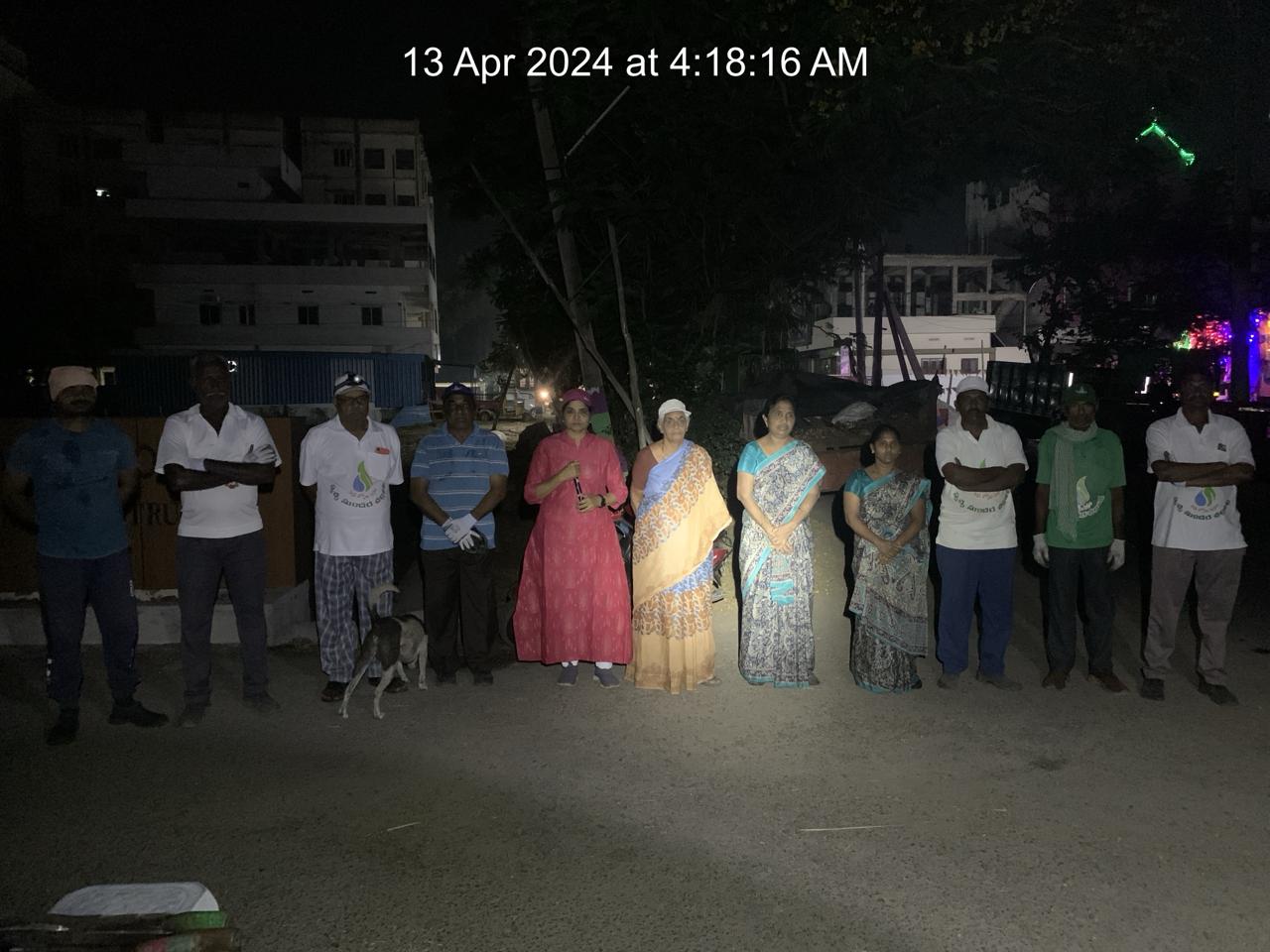 చివర్లో ప్రముఖ సుందరీకరణ చొరవశాలి ఆకుల దుర్గాప్రసాదు గారు పూనుకొని, గ్రామ స్వచ్చోద్యమ నినాదాలను ప్రకటిస్తున్నప్పుడు మొత్తం కారకర్తలు రెండు డజన్ల దాకా లెక్కించాను. ఇందులో సగం మంది 4:18 కే కార్యోత్సాహం చూపుతున్నారు.