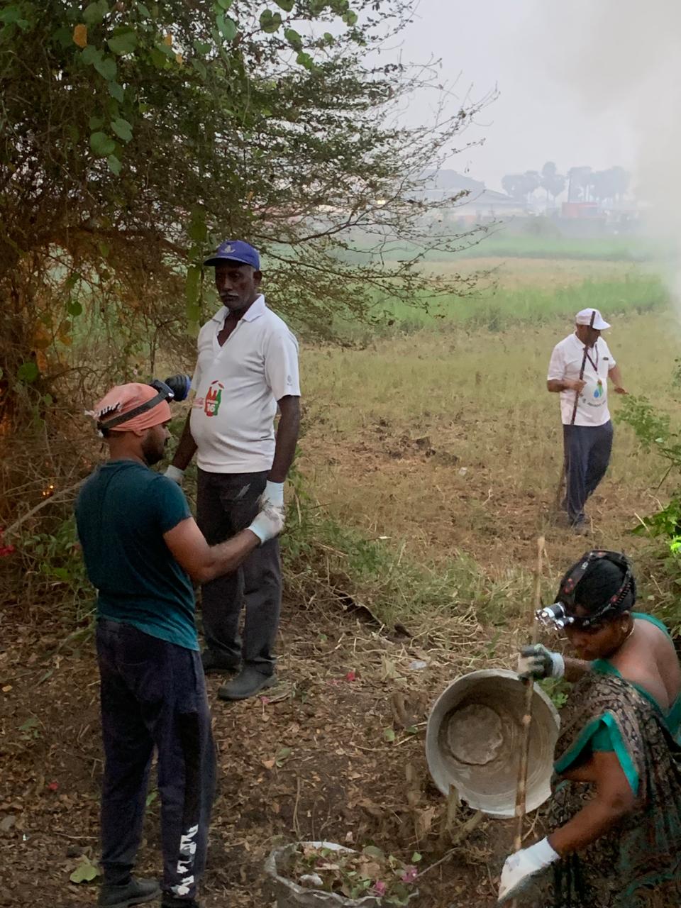 కత్తులు ఝళిపిస్తూనూ - దంతెల్తో వ్యర్ధాల్ని ప్రోగులు చేస్తూనూ - డిప్పల్తో వాటిని ప్రక్క పొలంలోకి చేరవేస్తూనూ - 15 మంది తీరిక లేకుండా కనిపించారు. రహదారిని చీపుళ్ళతో నిష్కళంకపరుస్తూ ముగ్గురు మహిళలు లేస్తున్న దుమ్ములో నుండి లీలగా కన్పించారు!