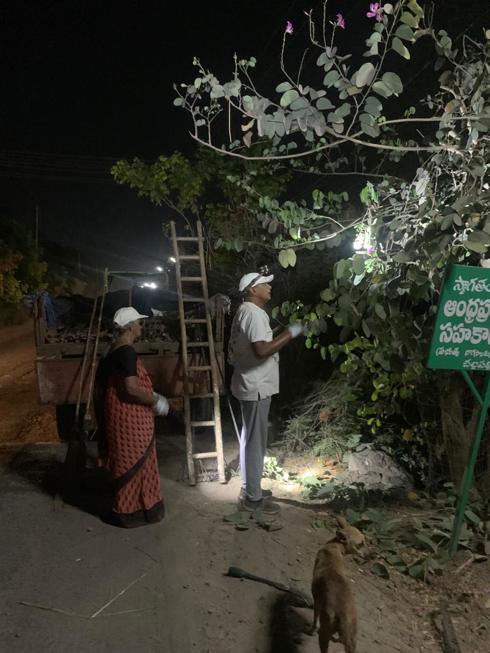 నారాయణరావునగర్ వైపుగా పంటకాల్వ ఉత్తరం గట్టు 50 గజాలూ, వంతెనకు దక్షిణ పశ్చిమంగా 50-60 గజాల వీధీ ఈ వేకువ కాలం కార్యకర్తల చెమటను రుచి చూశాయి! తత్ఫలితంగా నాలుగైదు ముళ్ల - పూలచెట్ల 30-40 కొమ్మలకు ఎత్తైన కరెంటు తీగల మధ్య నుండి విముక్తి కలిగింది - కరెంటు షాకు తగిలే అవకాశమున్న ఆ పనిలో నిమగ్నుడైన ఒకానొక సుందరీకర్తను గమనించండి!