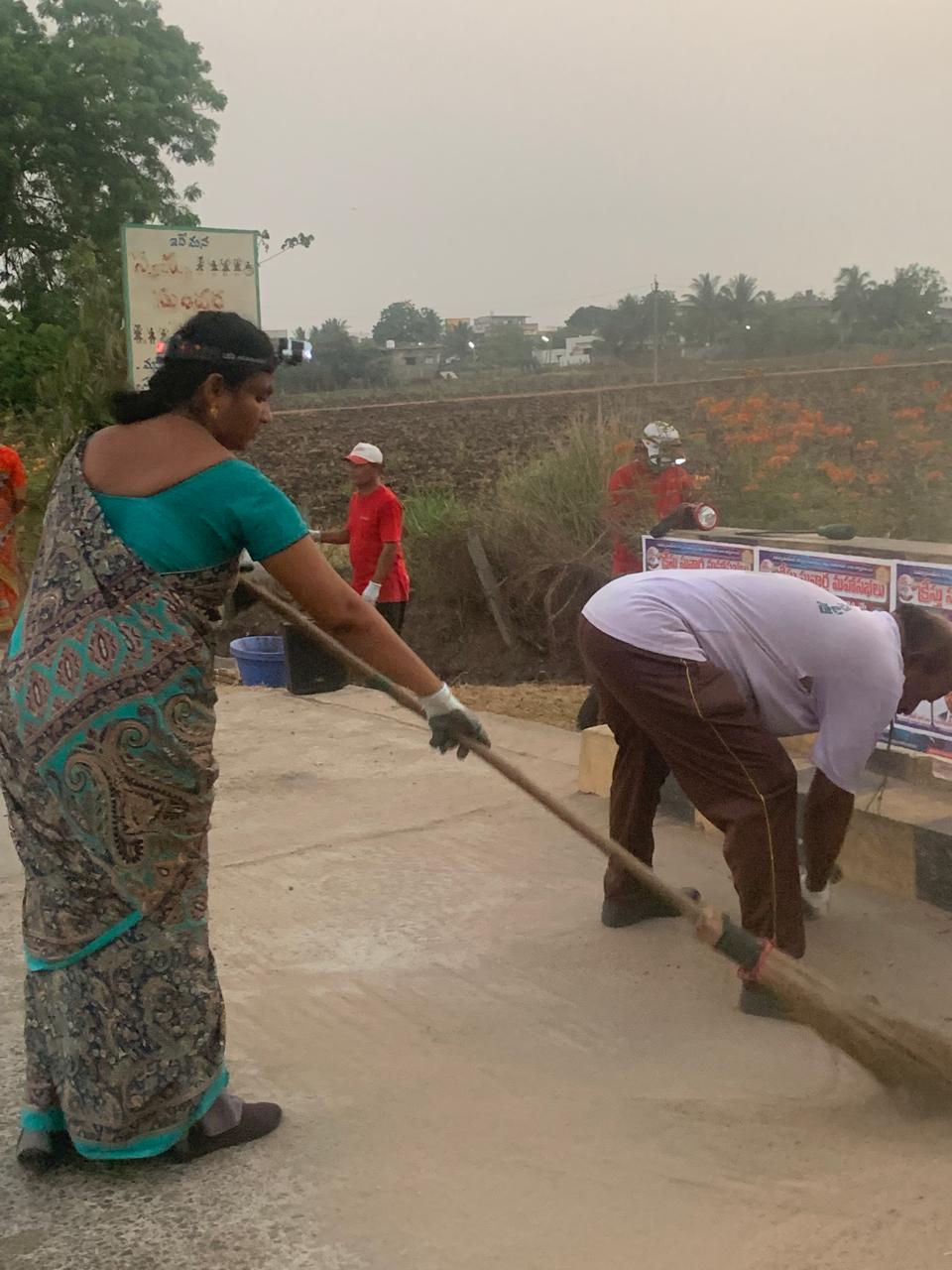 ఈ వారంలోనే 3 వ సారి అనుకొంటా - చీపుళ్ళతో తుడిచి, అక్కడి దుమ్మునూ - ఇసుకనూ పారల్తో, డిప్పల్తో మోసుకెళ్లి రోడ్డు మార్జిన్ గుంటలు నింపుతున్న ఐదారుగురి ప్రయత్నాన్ని అభినందించండి!