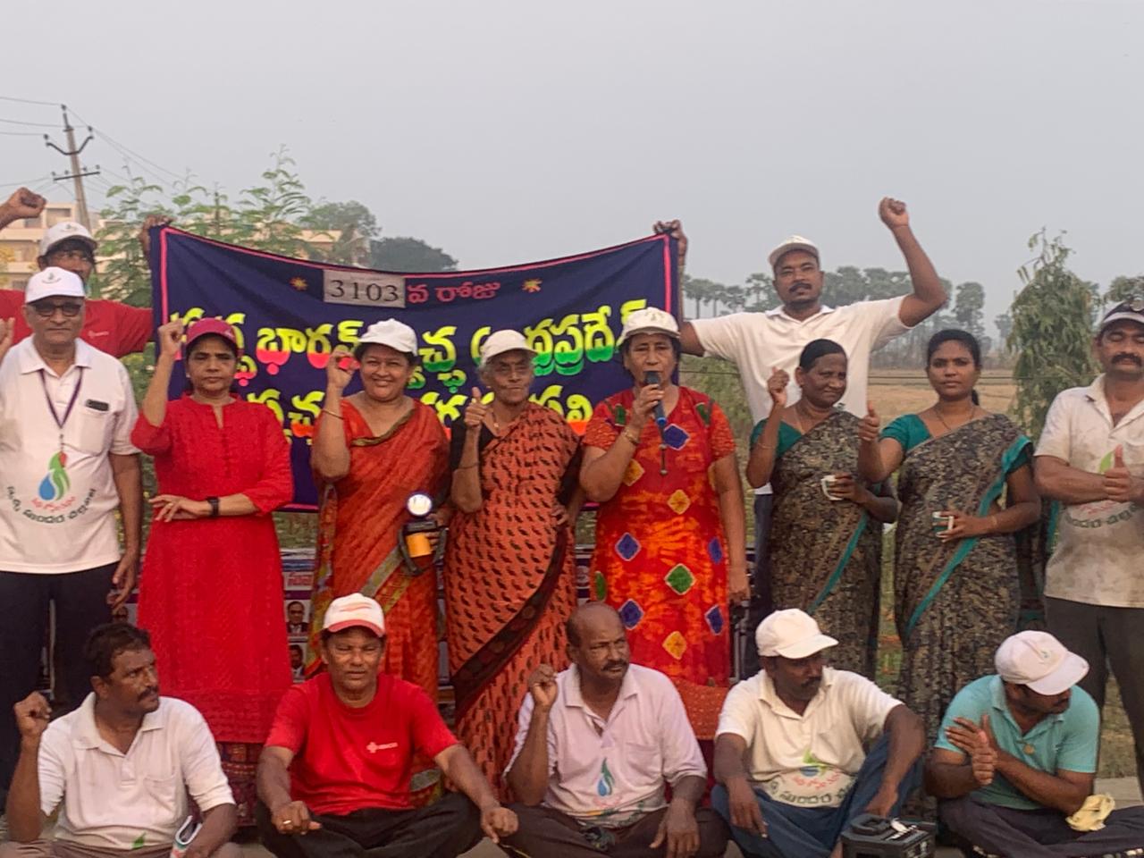 ఇక చివర్లో అందరూ అర్ధవలయంగా నిలబడినప్పుడు నమస్కార పూర్వకంగా కోట పద్మావతి ముమ్మారు కీర్తించిన గ్రామ స్వచ్ఛ – సుందరోద్యమ సంబంధిత నినాదాలను హర్షించండి!