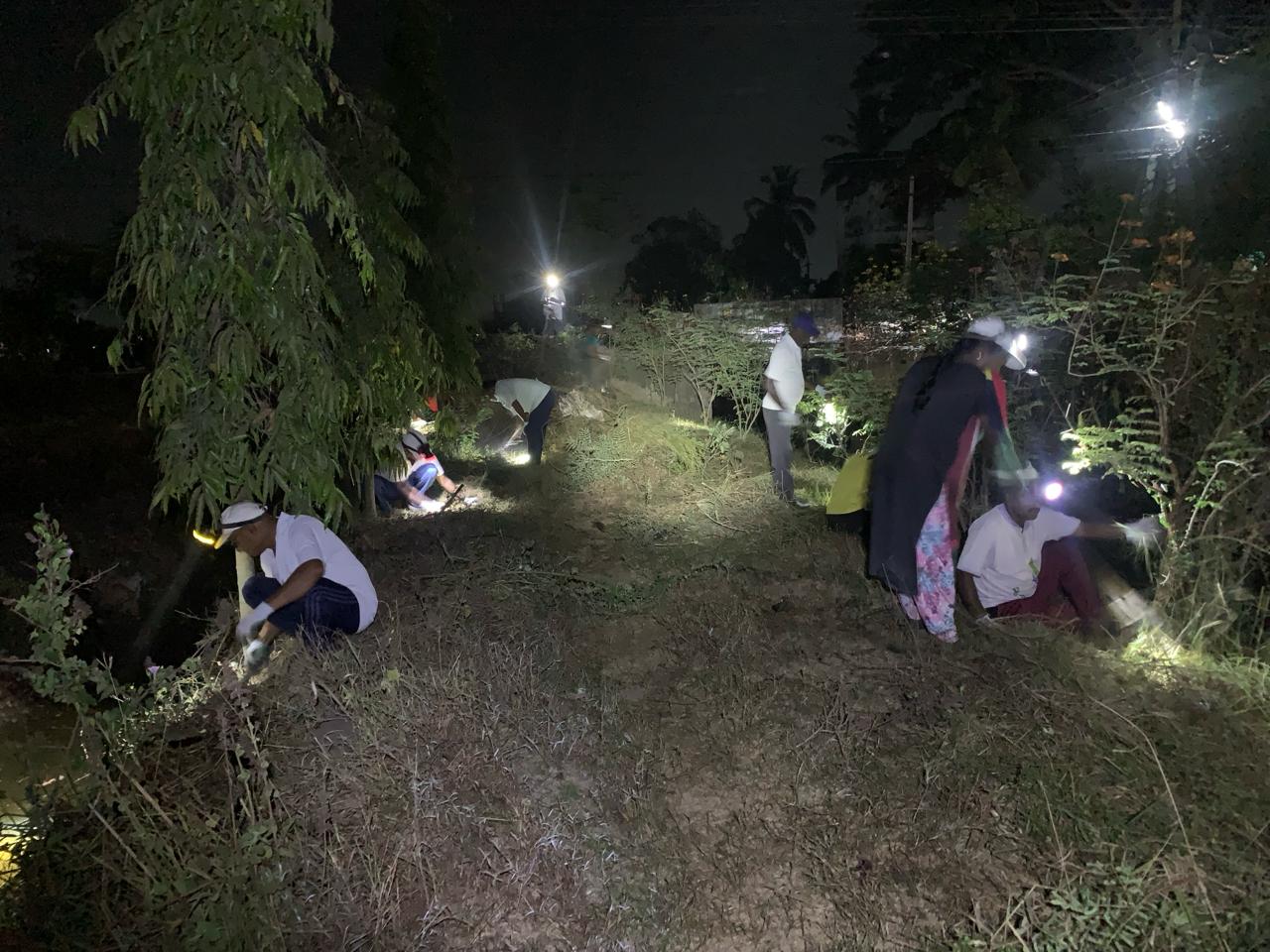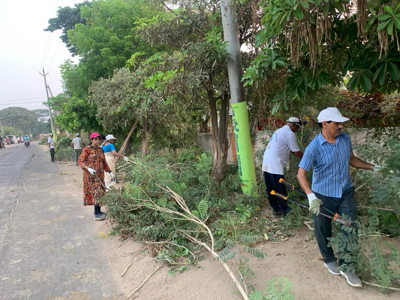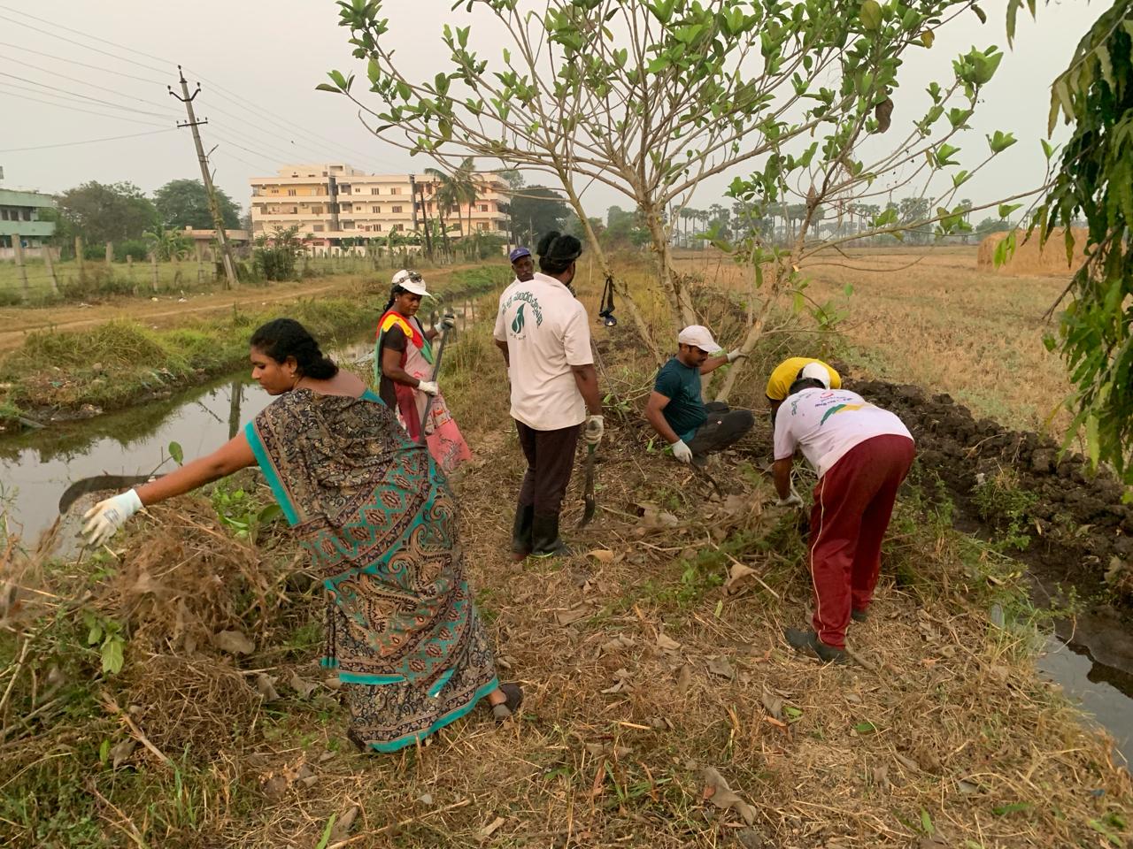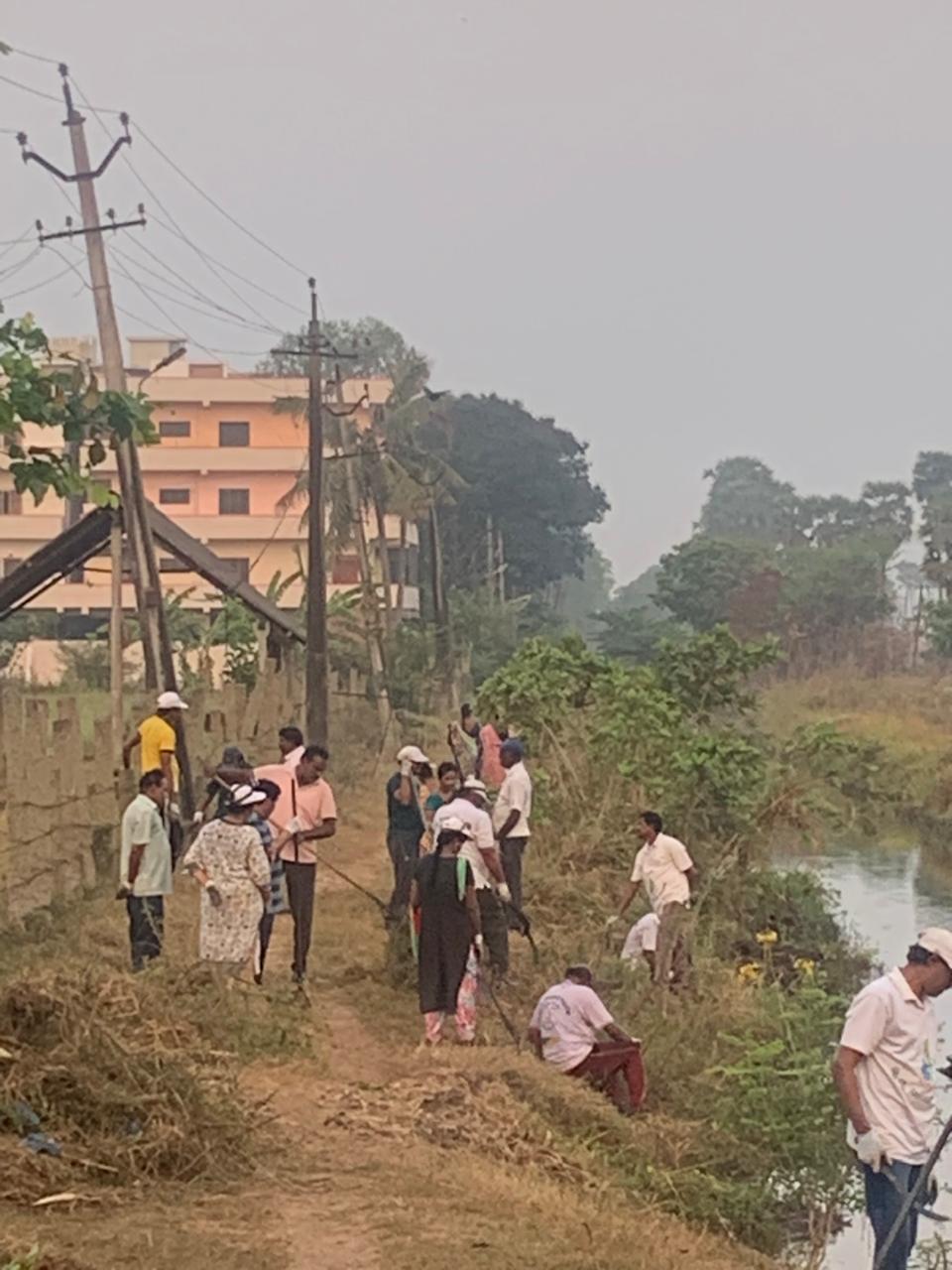 3) వంతెనకు పడమటి 2 కాల్వ గట్ల వ్యర్ధాల్ని కసి తీరా సంహరించుట, తామే గతంలో నాటి పెంచిన పూల చెట్ల మొదళ్ళ కలుపు తీసి, ప్లాస్టిక్ లు ఏరి, కాల్వలోని ప్లాస్టిక్ మూటల్నీ, ప్రాత గుడ్డల్నీ బైటకు గుంజుట,
