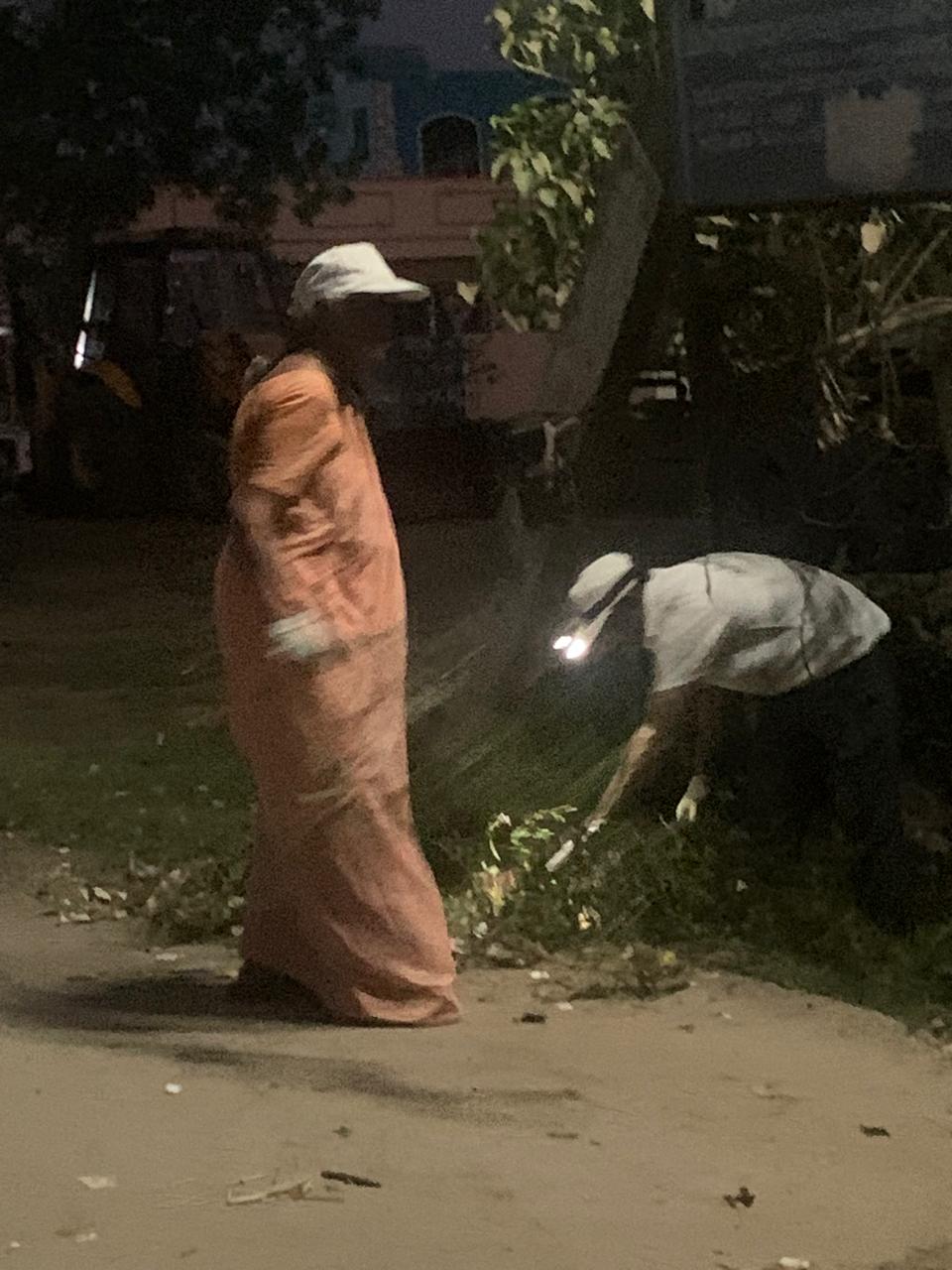 ఆదివారమైనందునేమో శ్రామికులు 35 మంది దాక రోడ్డెక్కారు. ఆ రోడ్డు బెజవాడ వైపుది- పదునొకండు గురైతే మరీ తొందరపడి4.16 కే విజయా కాన్వెంట్ గేటు ముందు క్రమ శిక్షణ తో వరుసలో నిలబడి కనిపించారు. ఆ తర్వాత ఇద్దరేసి, నలుగురేసి కార్యకర్తలు గబగబారావడమూ, చేతొడుగులేసుకోవడమూ, పనుల్లో దిగడమూ! చల్లపల్లి, పరిసర గ్రామాలకూ ఇదేం క్రొత్త సంగతి కాదు. కర్నాటకలో- భాగ్యనగరిలో- అమెరికా తదితర దేశ విదేశాల్లో వాళ్లూ ఈ దృశ్య ఛాయాచిత్రాల్ని వాట్సాప్ లో చూస్తూ -ఆనందిస్తూ- లైకులు కొడుతుంటారు. ఇలా చల్లపల్లి వీధుల్నూడ్చేవాళ్ళు, చూసి సంబర పడేవాళ్లు కాస్త అరుదైనవాళ్లు- నేటి సమాజ పోకడలకు భిన్నమైన సత్య కాలపు వాళ్లు! చాలమంది దృష్టిలో బతక చేతగాని వాళ్లూ- జాలిపడ దగిన వాళ్ళూనూ!