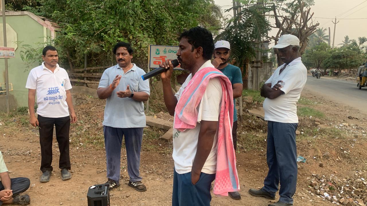 6.20 కి కాటాల దగ్గర చేరి, చెప్పుకున్న కబుర్లను ల్యాబ్ రవీంద్ర గబాగబా చెప్పిన నినాదాలు ఆపేశాయి! నందేటి శ్రీనును మొహమాట పెట్టి “ ఒక సుందర స్వచ్ఛ ఉద్యమం ఒనగూర్చిన ఫలితాలెన్నో-
