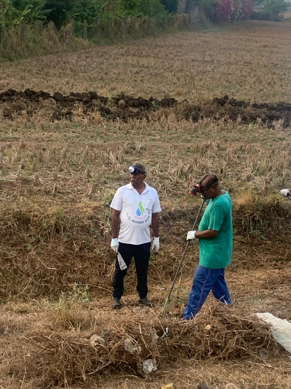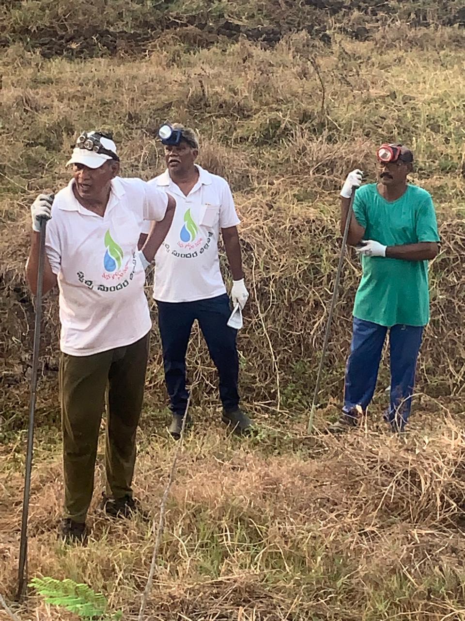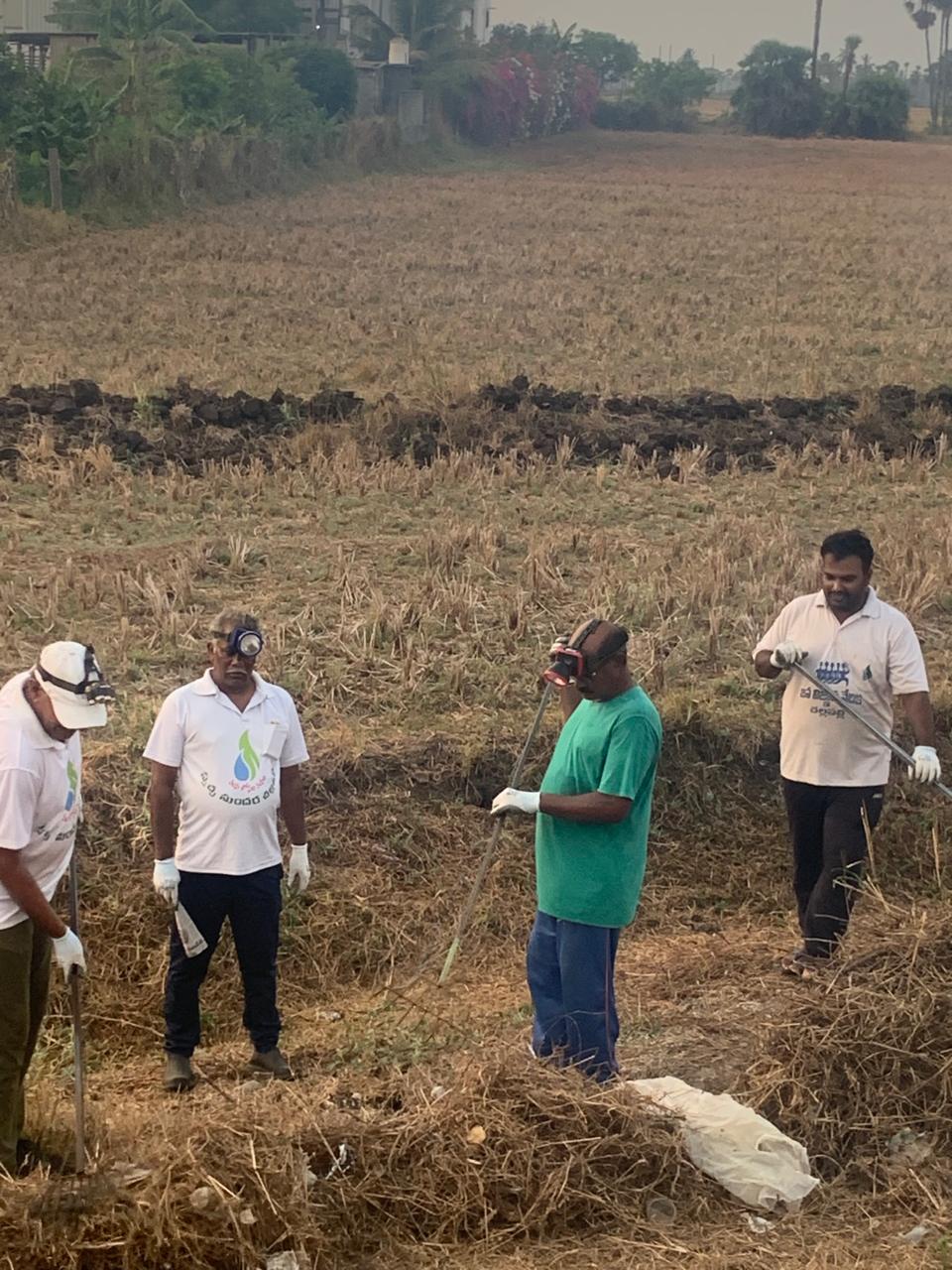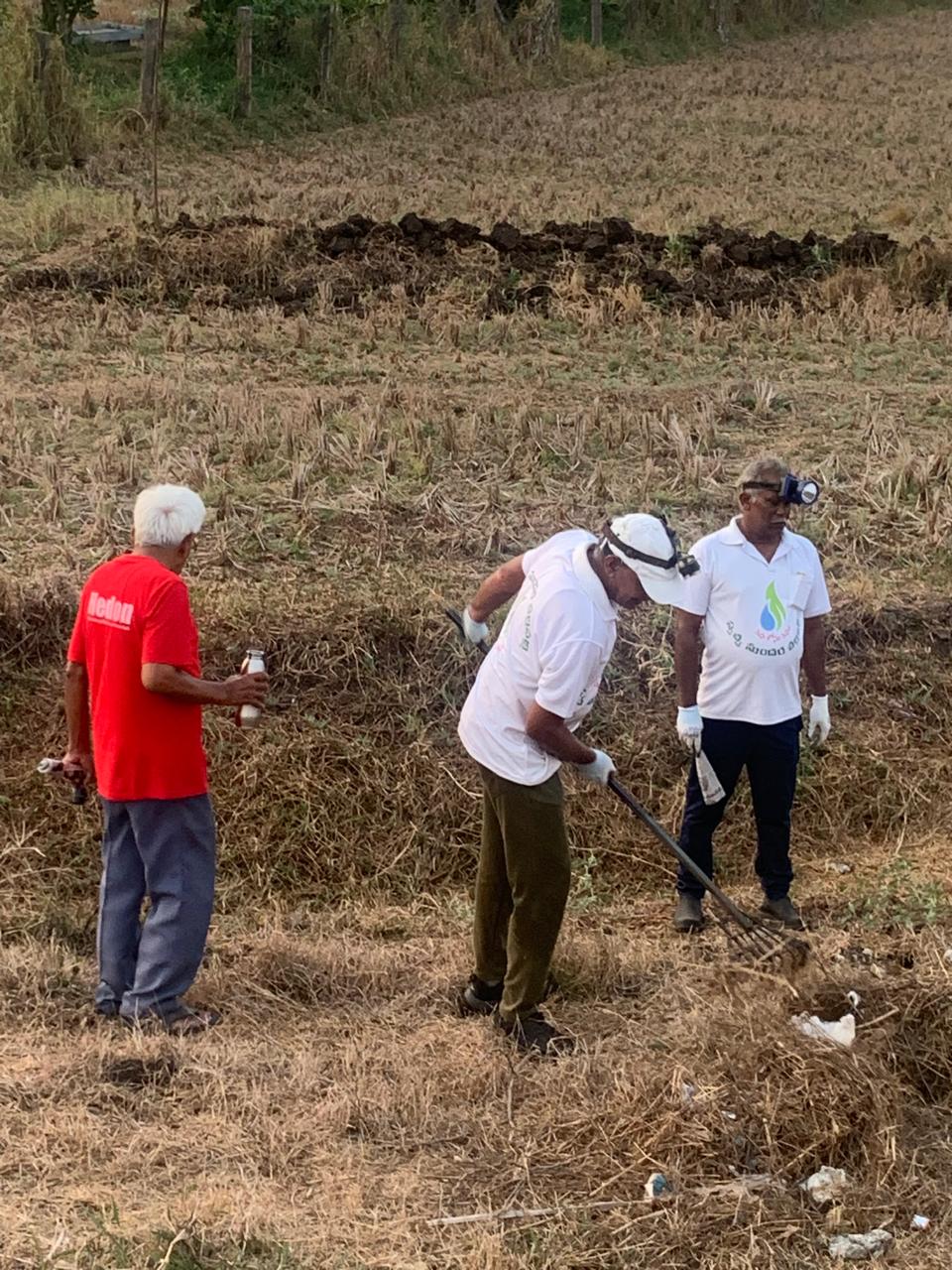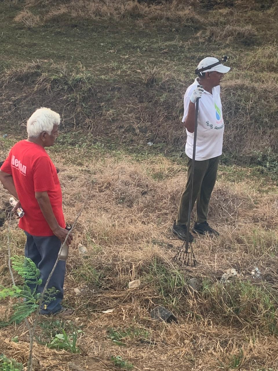 రహదారియొక్క లోతైన దక్షిణపు మార్జిన్లో కత్తులతో ముళ్ల మొక్కల పని పట్టుతున్నా - ఎండు గడ్డిని దంతెల్తో సమీకరిస్తున్నా - ఇతర పిచ్చి మొక్కల్ని నరికేస్తున్నా, పీకేస్తున్నా - దిక్కుమాలిన ప్రాత గుడ్డల్నీ, ఖాళీ ప్లాస్టిక్ సంచుల్నీ, రాష్ట్రంలో అద్భుత ప్రగతి సాధిస్తున్న మద్యం వాడకానికి గుర్తులైన మద్యం సీసాల్ని ఏరేస్తున్నా...... కార్యకర్తలది ఒకే దీక్ష – ఎంత క్లిష్ట వాతావరణంలోనైనా – తమ ఊరే కాదు - దగ్గరగా ఉన్న 7-8-9 రహదార్లు శుభ్రంగా ఉండాలనే!