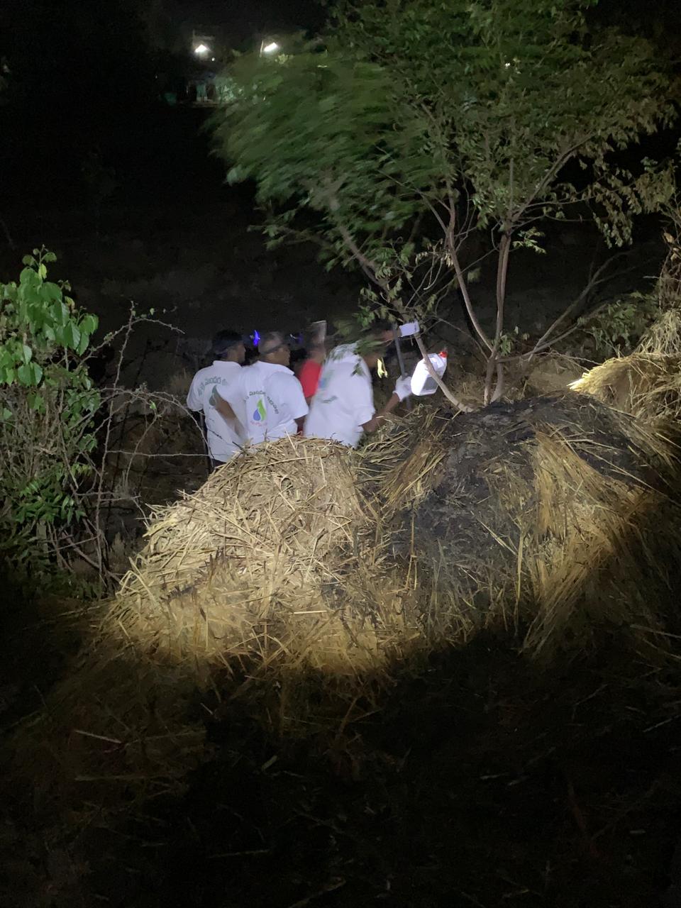 సోమవారం - 20.5.2014 వేకువ శ్రమదాన సమాచారం ప్రకారం - 4.20 సమయంలోనే 5 గురు గస్తీగది వీధిలోనికి వచ్చారు. వాళ్ల కందిన సమాచారాన్ని బట్టి NH 216 మీద - బందరు నుండి 22 వ కిలోమీటరు రాయి దగ్గర – గంగులవారిపాలెం వైపు వరిగడ్డి సగం కాలి, మిగిలింది చెల్లా చెదురుగా పడి ఉందని గ్రహించారు.